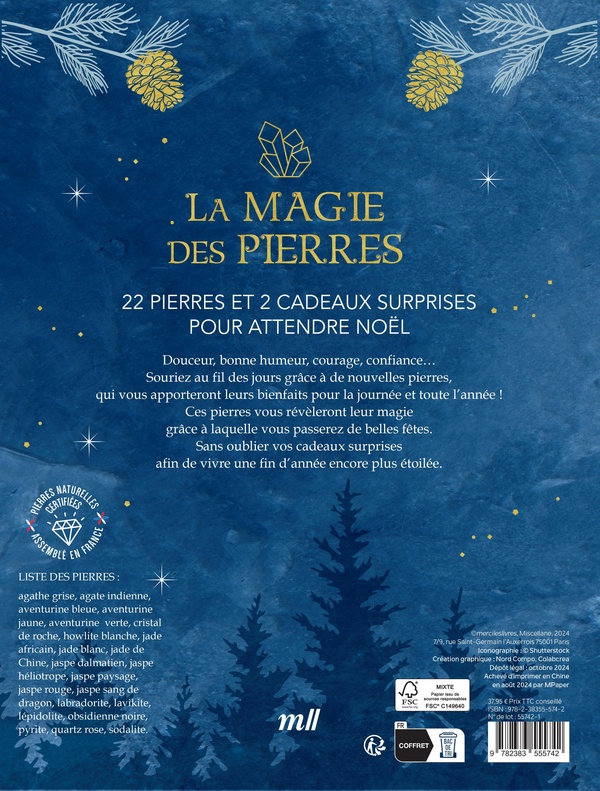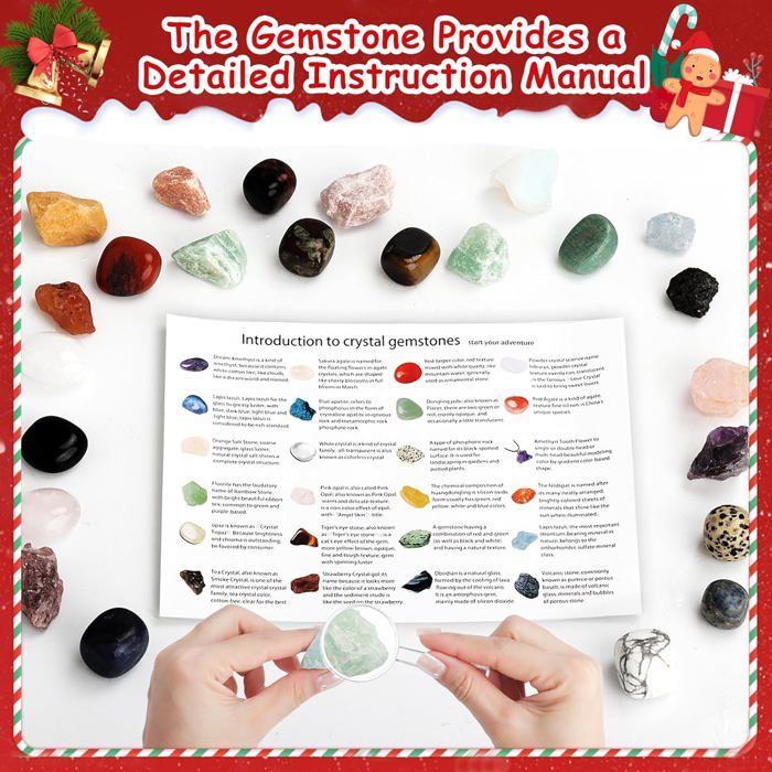 【Jeu Scientifique et Pédagogique STEM】Plus qu'un simple jouet, c'est une activité d'éveil scientifique. Chaque spécimen est une découverte unique, encourageant la passion de la collection et de la géologie dès le plus jeune âge. EN STOCK : Calendrier de l'Avent Cristaux 2025, compte à rebours de Noël avec 24 roches à ouvrir chaque jour. Idée cadeau de Noël original., XHWD-XL-M1716 pas cher. Livraison rapide partout en France Description :Matériau principal : RésineCouleur : Voir photoDimensions : 26 x 18 x 3 cmCaractéristiques :Calendrier de l'Avent en pierres précieuses et cristaux : Ce calendrier de l'Avent présente des pierres précieuses et des cristaux polis, ainsi que de nombreuses gemmes colorées et bien plus encore.24 jours de surprises : Cette boîte facile à ouvrir contient 24 compartiments... Idéal pour initier à la minéralogie. Ensemble de calendrier de l'avent de noël, pierres, minéraux, boîte 【Beauté Naturelle Authentique et Unique】Les pierres brutes portent les marques de la Terre : leurs stries, leurs nuances et leurs « imperfections » sont la preuve de leur authenticité et racontent l'histoire de leur formation. Offrez un présent qui allie fun et apprentissage. Calendrier De L'avent Calendrier De L'Avent Pour Enfants - 2025 - Pierres Précieuses - Minéraux - Pierres - 24 Jours - Noël - Compte à Rebours - - Maison Calendrier De L'avent 2025 Minéraux Un jeu éducatif qui stimule l'imagination. C'est le compte à rebours idéal avant Noël pour les enfants curieux. 【24 Surprises de Pierres Naturelles à Collectionner】Ce calendrier de l'Avent garçon et fille contient 24 minéraux surprises différents.