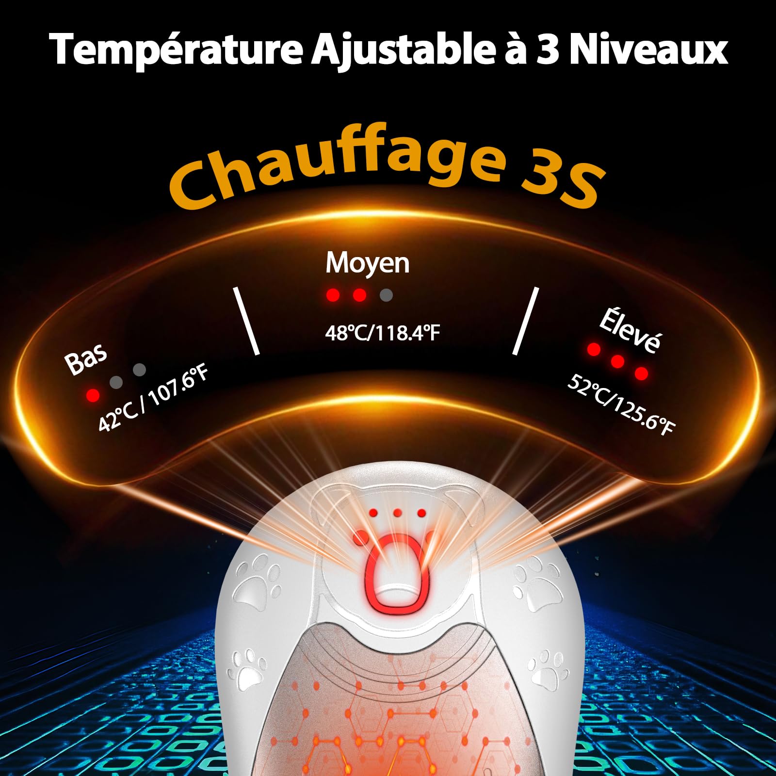 Chaufferette main rechargeable prévient efficacement les engelures, protège vos mains, et est un compagnon pratique pour les activités hivernales en extérieur et les trajets travail. C'est un cadeau d'anniversaire ou de fête qui réchauffe le cœur pour vos amis et votre famille Doté de batteries haute performance de 2 x 6000mAh chacune, l'autonomie peut atteindre 6 à 12 heures, gardant vos mains au chaud même en plein air. Gant Chauffant Chauffe Main Rechargeable OUTJUT Lot De 2 Chauffe-mains Rechargeables De 12 000 MAh, Chauffe Chaufferette Main Reutilisable Cadeau Camping Ski 【Set Magnétique Divisible】Ce chauffe-main s’allume d’un simple bouton, idéal pour l’hiver. Appuyer brièvement : changer de mode (voyant rouge). Double-clic : vérification de la batterie (voyant bleu). Design magnétique à clipser et chauffage complet à 360 ° : avec son design innovant de coin magnétique, deux chauffe-mains peuvent être attachés en toute sécurité pour fournir deux fois plus de chaleur ou séparés pour une utilisation individuelle flexible Chauffe Main Rechargeable 4000mAh - Batterie Externe 2 en 1 Space Bear avec Lumière ambiance - 3 【Batterie 12000mAh & Chauffage Rapide Double Face】La technologie de chauffage double face permet une montée en température instantanée. 【Contrôle Intelligent Simplifié】Fonctionnement intuitif avec un seul bouton : Maintenir 3-4 sec : allumer/éteindre (voyant rouge). Son design portable s’adapte parfaitement aux activités sportives.