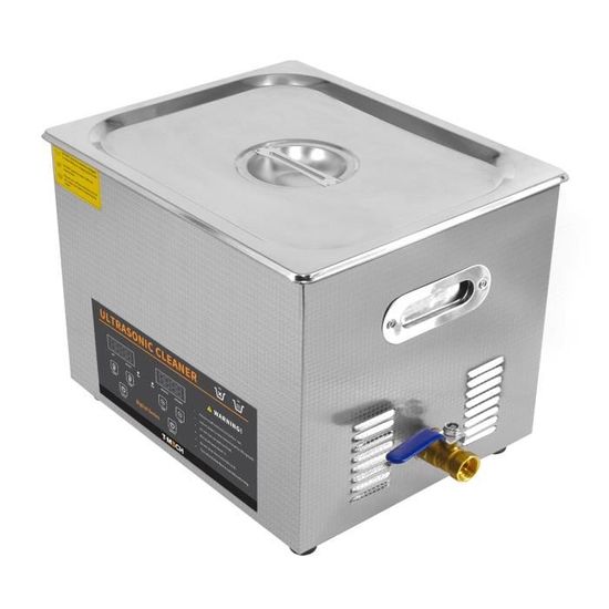 Support de séchage pour un séchage naturel des disques vinyles. Pour installer le nettoyeur, placez-le sur une surface plane, branchez-le à une prise électrique, remplissez le réservoir avec de l'eau et ajoutez un agent de nettoyage si nécessaire. Insérez les disques vinyles dans le support et réglez la minuterie et la température selon vos besoins HAUTE FRÉQUENCE DE 40,000 Hz - Le nettoyage par vibration ultrasonique élimine la poussière fine de la surface des objets et des crevasses des disques, offrant un traitement plus rapide et plus complet que le nettoyage manuel sans endommager le produit. Les disques blancs protègent les étiquettes de l'humidité. NETTOYAGE PUISSANT & MULTI-USAGES - La puissance de ce nettoyeur de disques à ultrasons est fixée à 180 W, avec 3 vibrateurs industriels de haute qualité, ce qui augmente considérablement la puissance de nettoyage. Il peut être utilisé non seulement pour les disques, mais aussi pour nettoyer les modèles en plastique, les lunettes, les pinces à dents, les bracelets de montre, les marionnettes à main, les bijoux, les rasoirs et autres petits articles ménagers, ainsi que les carburateurs, les pièces métalliques, les circuits imprimés et bien plus encore. En cas de taches importantes, le nettoyage de 20 à 30 disques avec 6 litres d'eau ne pose aucun problème. Nettoyeur de disques vinyle à ultrasons, machine à cavitation sonique portable avec minuterie En outre, le revêtement intérieur a une épaisseur de 1,1 mm pour une durée de vie plus longue. Résolvez l'usure causée par un brossage normal et profitez de la qualité sonore du disque comme s'il était neuf. 1-30 minutes de temps de nettoyage de réglage libre. VEVOR Nettoyeur a Ultrasons pour Disque Vinyle Nettoyeur Ultrasonique Professionnel 6L 4 Disques... Vinaigre Blanc Nettoyeur à Ultrasons Pour Disques Vinyles - 6 L - Minuterie De 0 à 30 Nettoyeur Ultrasonique Disques Vinyle HEATING&TIME CONTROL - 20-80℃ libre choix, généralement choisir la meilleure température de chauffage de 25-35℃.