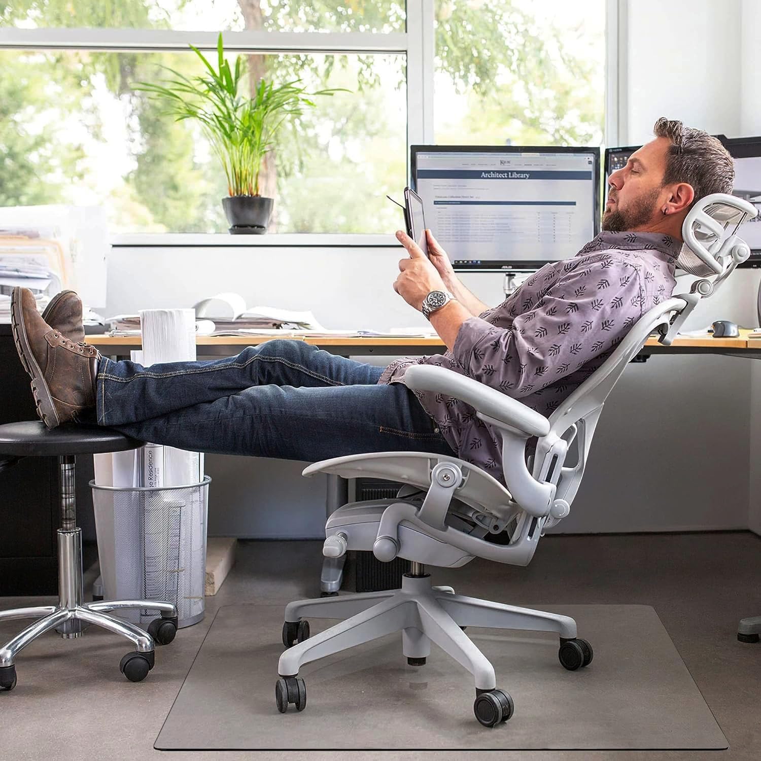 Le tapis de chaise de bureau ne convient pas pour une utilisation sur n'importe quel tapis. Karat Tapis De Protection Du Sol En Polycarbonate Caractéristiques : - Offre une solution de protection pour les sols durs et le carrelage. Il ne contient pas de chlorure de polyvinyle, pas de toxine volatile, pas d'odeur spéciale, pour un environnement intérieur sain. Matériau sain : ce tapis de chaise de bureau est fabriqué en PVC et sans BPA. Le tapis de chaise de bureau est également flexible et peut être posé à plat sans friser. Antidérapant : le givre sur la surface peut obtenir une forte adhérence qui empêche la chaise de glisser tout en contrôlant le roulement de la chaise, ce qui aide également à réduire considérablement le risque de fatigue des jambes. XunZheng Tapis Chaise Gaing Antidérapant - Tapis de Protection de Sol... Antidérapant conçu pour obtenir une forte adhérence sans percer ou endommager votre sol. Grand Tapis De Chaise De Bureau Lourd Pour Sols Durs, 121,9 X 152 Protection Sol Bois Chaise Roulante Amyracel Grand Tapis De Chaise De Bureau Pour Plancher En Bois Dur - 116,8 X 182,9 Cm - Tapis De Sol Transparent Pour Chaise De Bureau à Glissement Facile Pour Sols En Tapis Chaise Bureau Sol Carrelage Stratifié Durabilité et flexibilité : la surface du tapis est super résistante, de sorte que notre tapis de chaise de bureau ne se fissure pas ou ne se brise pas tout en protégeant le sol de votre bureau contre les dommages aux roulettes de chaise. - Résistant aux fissures et aux rayures dans le cadre d'une utilisation standard. Extrêmement durable et résistant aux chocs. Transparent - Convient pour les planchers en bois dur. Caractéristiques : - Dimensions : 121,9 x 91,4 cm., - Poids : 2 kg., - Matériau : PVC., - Épaisseur : 0,2 cm., Conseils : 1., Ces tapis peuvent être roulés lorsqu'ils sont emballés.
