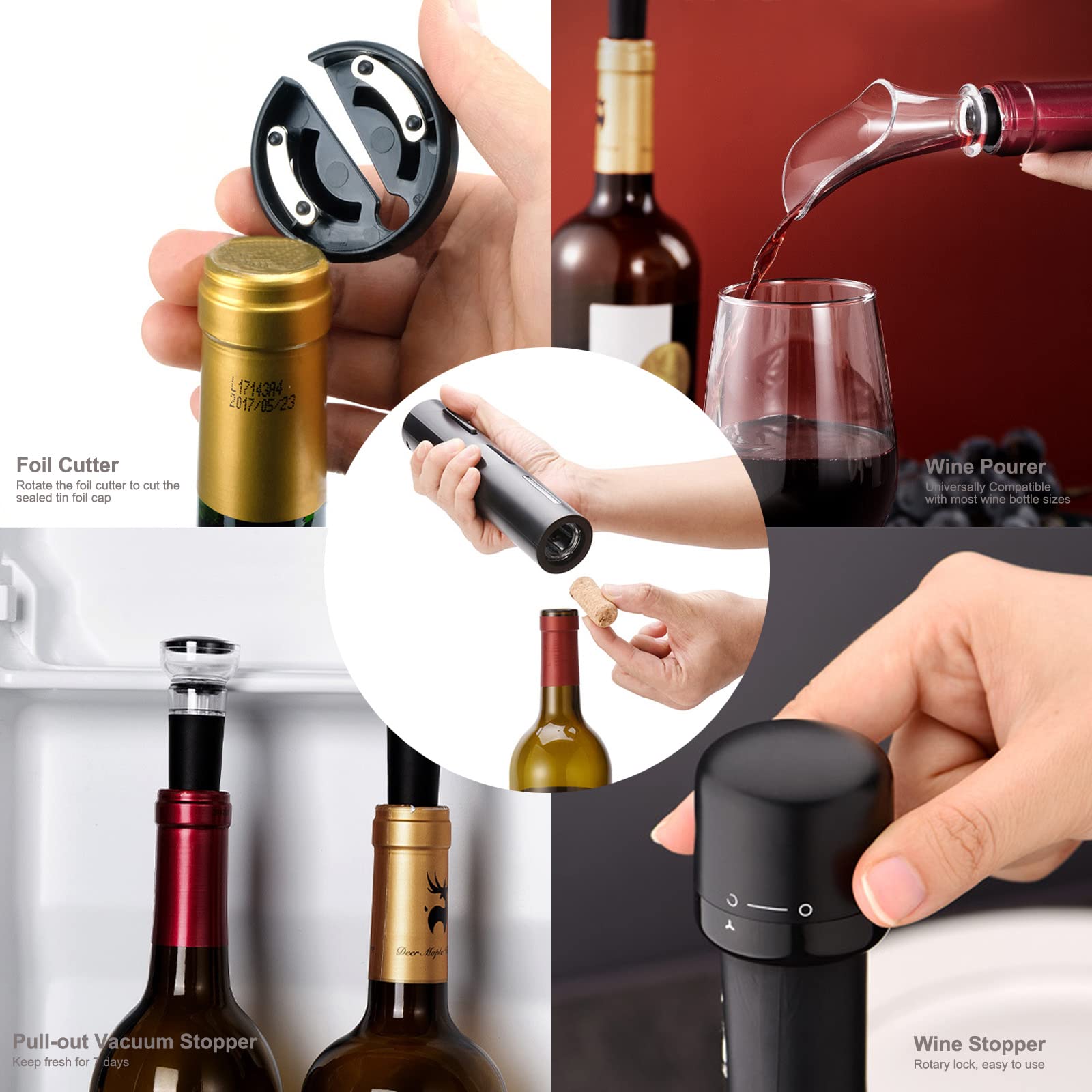 Ouvre et ferme les bouteilles de vin sans effort, garantissant un vin de qualité à chaque gorgée. C'est un cadeau idéal pour vos proches et est idéal pour la randonnée, le camping, les barbecues et les voyages. 🍷【Facile à utiliser, silencieux et rapide】Avec ce décapsuleur électrique, vous pouvez retirer les bouchons en moins de 7 secondes sans les abîmer. Ouvrez et fermez les bouteilles de vin sans effort et savourez un vin de qualité à chaque gorgée. Conception portable Notre tire-bouchon électrique est compact et facile à transporter, ce qui lui permet de gagner de la place lorsqu'il n'est pas utilisé. TIRE-BOUCHON,Stainless steel suit--Tire bouchon électrique automatique... Tire bouchon électrique batteries rechargeables inox H20cm Elis Maisons du Monde 🍷【Ouvre-bouteille électrique rechargeable】Le tire-bouchon électrique est doté d'une batterie rechargeable intégrée, éliminant ainsi le besoin de changer les piles. 🎁【Cadeau idéal】Ce décapsuleur électrique rechargeable présente un design et un emballage uniques. Compatible avec la plupart des bouteilles de vin et tous les types de bouchons, il est idéal pour les amateurs de vin. Cadeau idéal : Ce décapsuleur électrique rechargeable, au design et à l'emballage uniques, est à la fois élégant et pratique, ce qui en fait un cadeau idéal pour vos proches et les amateurs de vin. Tire Bouchon Electrique Rechargeable BGFOX Kit Décapsuleur électrique Avec Automatique, Coupe-capsule, Distributeur De Vin électrique Automatique Et Bouchon Sous Vide, Rechargeable, En Acier Inoxydable, Cadeaux Tire-bouchon électrique Fonctionnalité 6 en 1 : notre ensemble ouvre-bouteille de vin comprend non seulement un ouvre-bouteille de vin électrique, mais également un coupe-papier, un joint sous vide, un arrosoir à vin et un câble de chargement USB pratique, le tout dans un ensemble pratique Facile à utiliser Avec ce tire-bouchon électrique, vous pouvez retirer les bouchons en moins de 7 secondes sans les abîmer. Il ouvre et ferme les bouteilles de vin sans effort, garantissant un vin de qualité à chaque gorgée. Le choix idéal pour les amateurs de vin. Ce tire-bouchon est fabriqué en acier inoxydable robuste et en ABS, ce qui le rend extrêmement durable et sûr. Idéal pour les anniversaires, les mariages, les anniversaires de mariage, Noël, le Nouvel An, Thanksgiving, la fête des Mères, la fête des Pères, la Saint-Valentin, etc. 👍【Design portable】Notre décapsuleur électrique est compact et facile à transporter, ce qui permet de gagner de la place lorsqu'il n'est pas utilisé.