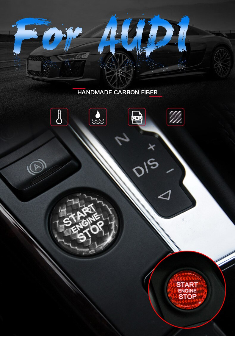 Protection Bouton Start Stop GARNITURE COUVERCLE BOUTON Poussoir Arrêt Démarrage Moteur Voiture Cache Protection Bouton Start-stop Performance : Le matériau de haute qualité garantit une longue durée de vie et un aspect attrayant. Pour 12V-24V 50A Voiture Véhicule Moteur Démarrage Bouton Poussoir... Avec ce couvercle de bouton poussoir de démarrage, vous pouvez très bien décorer le bouton moteur de votre voiture. -Facile à installer et à utiliser, vous offrant une grande commodité lorsque vous utilisez le bouton poussoir pour démarrer Le couvercle est rouge et fabriqué en alliage d'aluminium de haute qualité pour une durabilité accrue. Couleur et matériau assortis : La couleur rouge s'harmonise parfaitement avec le design intérieur des modèles Audi modernes. CACHE BOUCHON INTERRUPTEUR bouton poussoir démarrage moteur universel Cet accessoire est compatible avec les modèles Audi suivants : Audi A4 (à partir de 2013), Audi A5 (à partir de 2013), Audi A6 (à partir de 2012), Audi A7 (à partir de 2012), Audi A8 (à partir de 2014) et Audi Q5 (à partir de 2012). Description du produit: Ce cache bouton de démarrage est spécialement conçu pour les voitures Audi comme A4, A5, A6, A7, A8 et Q5., Le diamètre extérieur est de 1., 34 pouces, le diamètre intérieur est de 1., 06 pouces, garantissant un parfait ajustement. Utilisation: Veuillez vérifier que le bouton de démarrage de votre Audi correspond au modèle indiqué sur l'image. La couverture est facile à fixer et ne bloque pas les lumières des boutons. Ce cache est compatible avec les modèles Audi suivants: Audi A4 (depuis 2013), Audi A5 (depuis 2013), Audi A6 (depuis 2012), Audi A7 (depuis 2012), Audi A8 (depuis 2014), Audi Q5 (depuis 2012). Ses éléments de design s'intègrent parfaitement à l'intérieur de votre Audi et rehaussent son esthétique. Fonctions : Cet accessoire sert non seulement de décoration, mais protège également le bouton marche/arrêt. Fonctions: Ce cache ne sert pas seulement à la décoration, mais protège également le bouton de démarrage.