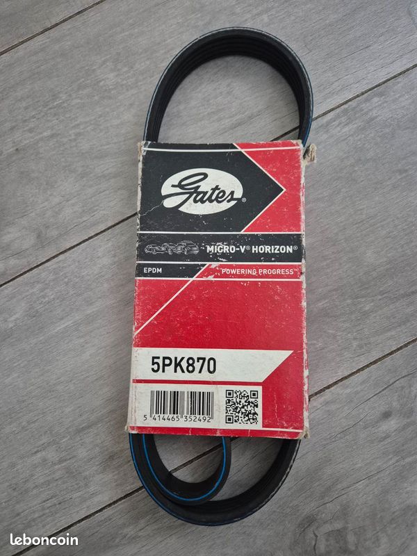 Faible niveau sonore, même sur les transmissions fatiguées , Gamme en EPDM Chez Gates, nous concevons, fabriquons et fournissons des solutions de courroie striée sur mesure pour de grands constructeurs automobiles, en étroite collaboration avec leurs ingénieurs Nos courroies striées sont présentes en première monte chez les plus grands constructeurs automobiles du monde Grâce à elles, les moteurs offrent des performances inégalées Nous mettons tout notre savoir-faire en ingénierie et toutes les améliorations techniques de nos courroies de première monte au profit des courroies striées destinées au marché de la rechange Toutes les courroies Micro-V® de Gates possèdent les caractéristiques techniques de première monte de dernière génération Nos clients ont ainsi l’assurance que les courroies qu’ils reçoivent égalent en performance celles installées à l’origine par le constructeur Flexibilité optimale, facile à installer Courroie Rechange Constructeur 5PK870 GATES Micro-V 58355 Courroie Poly-V 870mm, 5 | AUTODOC Courroie Micro-v Courroie trapézoïdale à nervures GATES 5PK870 au meilleur prix Courroie trapézoïdale à nervures Micro-V® 5PK870 Gates € 9,01 Le prix initial était : €9,01.€ 2,70 Le prix actuel est : €2,70 Kit Accessoires GATES Courroie Micro-V 6PK2453 - Profil Optimal Stabilité Renforcée Moteurs Compacts Courroie Haute Résistance