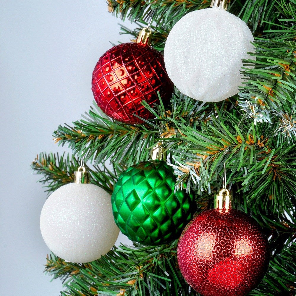 Boules Plastique Incassable Rouge Or Vert 49 Boules De Noël Rouge Or Vert Set, 3cm Plastique Crochet Mini Pendentifs Pour Décoration D'Arbre De Noël Lot Boules Rouges Or Vert Compactes et réutilisables : les boules sont livrées dans une boîte cadeau pratique qui permet un rangement sûr après la période de Noël. Facile à accrocher : chaque décoration de sapin de Noël suspendue est livrée avec des crochets pour boules de Noël pour une suspension facile. Les petites boules de Noël de 3 cm peuvent également être réutilisées pour le prochain Noël Excellent petit emballage cadeau : KYOEOE fournit 49 boules de Noël rouge doré qui brillent avec de la corde, les boules de Noël en plastique sont livrées emballées individuellement, les boules de décoration de Noël sont idéales comme cadeau pour les amis et la famille Également un ajout festif pour les mariages, les fêtes et les événements d'hiver. Réutilisable année après année, ce qui le rend durable et pratique. Boules de Boules de Noël Decoris - 37x pièces - 6 cm - avec 2x Légères pour décorer les petites branches. Description du produit : Ajoutez une ambiance festive à votre intérieur avec ce lot de 49 boules de Noël rouges, dorées et vertes. Grâce au mélange de motifs brillants, mats et scintillants, il crée une image globale variée qui donne à votre arbre un look élégant et festif. Livrées dans une boîte cadeau solide, les boules peuvent être stockées et utilisées encore et encore. Les boules en plastique incassable sont durables et sans danger pour les enfants et les animaux domestiques. Elles donnent à votre arbre un rayonnement élégant et festif. Le kit contient des boules d'aspect brillant, mat et scintillant qui peuvent être merveilleusement combinées. Chaque boule a un diamètre de 3 cm et est livrée avec un crochet assorti - pour une décoration facile et rapide de votre sapin de Noël.