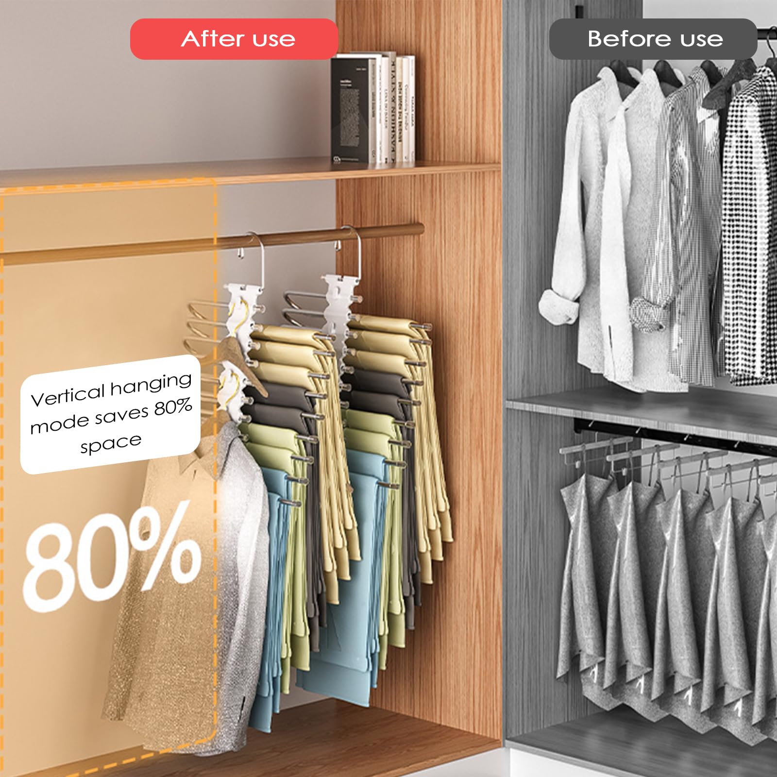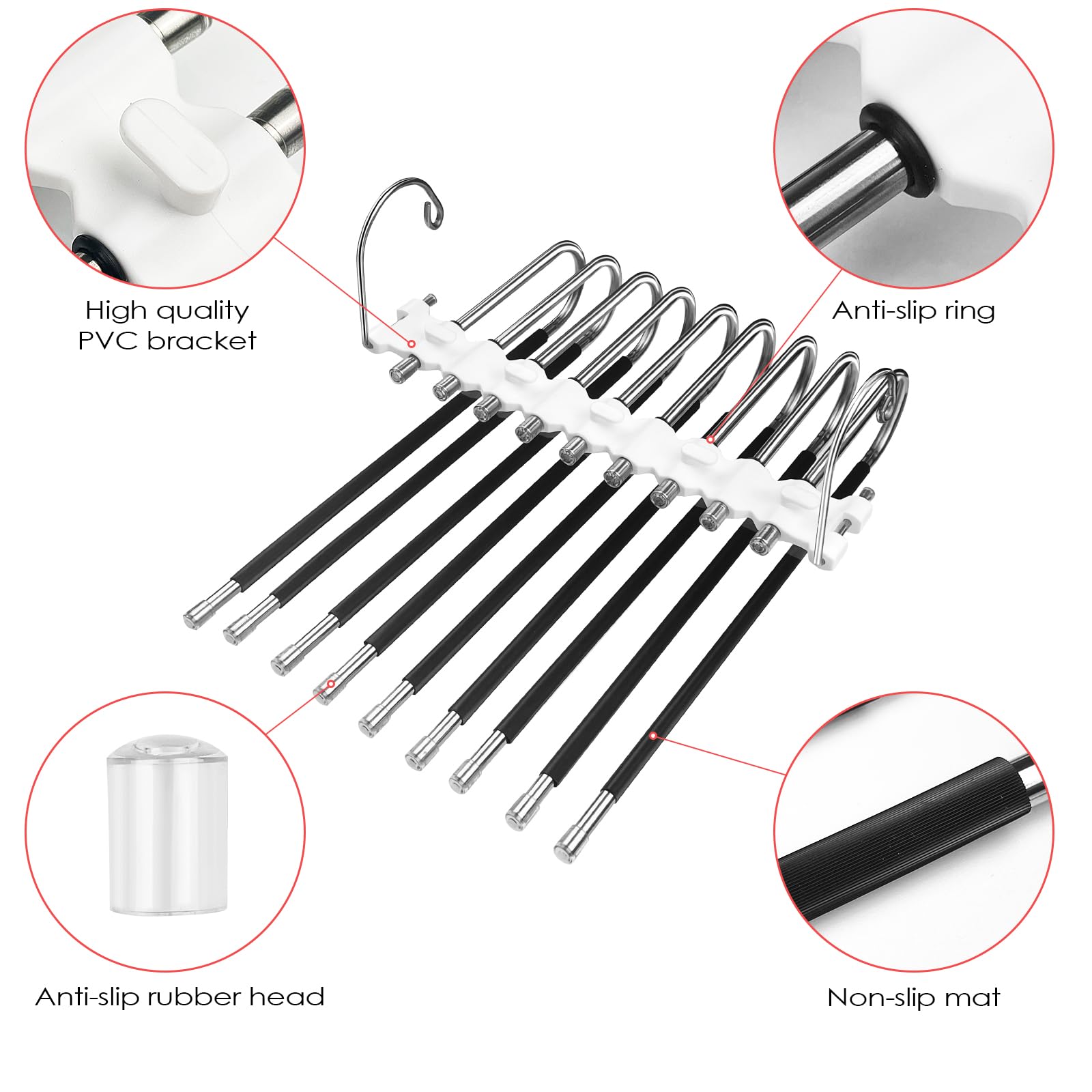 【Matériaux de haute qualité】Cintre pantalon fabriqué en acier inoxydable épais, relié par une plaque principale en plastique ABS. Chaque cintre peut contenir au moins 9 paires de pantalons, jeans, leggings, écharpes ou autres vêtements. Économisez au moins 80 % d'espace et gardez votre placard propre et organisé Chaque tige est munie d'un manchon antidérapant pour empêcher les vêtements de glisser et les garder bien rangés. Chaque cintre peut accueillir jusqu'à 9 pantalons, et le lot de 2 peut en accueillir 18., Accédez facilement à chaque pantalon sans avoir à le chercher. 【Nombreuses utilisations】Ce porte-pantalons s'adapte à de nombreux environnements, que ce soit pour une garde-robe à la maison, un dortoir, une location ou un voyage. Porte-pantalons Pliable Rangement Garde-robe 9 En 1 Cintre Pantalons, Lot De 2 Cintre Pantalon Gain De Place, Ceintre Pour Pantalons Antidérapants, Porte Pantalon Pliables Pour Pantalons, écharpes, Jeans, Vêtements, Serviettes Rangement Vêtements Multifonction 【Facile à utiliser】Cintre pantalon ce lot de 2 cintres à pantalons permet de gagner 80 % d'espace dans votre garde-robe, optimisant ainsi l'espace et l'organisation. 【Facile à ranger】Ce porte-pantalons polyvalent peut être suspendu horizontalement ou verticalement, pour un gain de place. Son design ouvert facilite l'accès et le rangement des vêtements. Il facilite l'accrochage et la récupération des pantalons. Il offre une solution de rangement efficace. 【Gain de place】Ce cintre 9 en 1 présente un design innovant. Azeroth Lot De 2 Cintres En Acier Inoxydable De Type S Antidérapants
