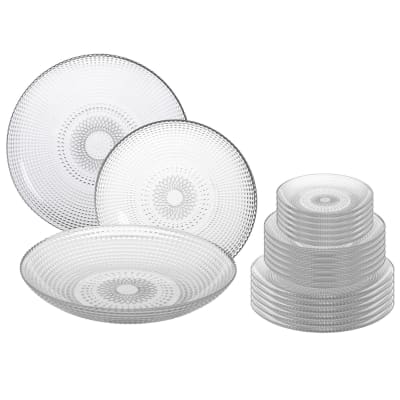 Que ce soit pour la maison, les entreprises de restauration ou comme cadeau, l'assiette décorative en verre est un choix élégant et fonctionnel pour toutes les occasions. Petits prix et livraison gratuite dès 25 euros d'achat sur les produits KADAX. Commandez KADAX Assiette en verre de 30 cm, 1 pièce, assiette ronde en verre transparent, grande assiette de service en verre, idéale comme assiette à gâteau, assiette à dessert, assiette plate ou assiette de Que ce soit pour le petit-déjeuner, le café de l'après-midi ou un dîner festif, cette assiette deviendra le centre élégant de chaque table. Verre de qualité supérieure : fabriquée en verre robuste, l'assiette est particulièrement résistante aux rayures et aux éclats - Idéale pour un usage quotidien ainsi que pour des occasions spéciales. Matériau de qualité alimentaire : le verre utilisé est totalement insipide et sans odeur, ce qui signifie qu'il n'y a pas de transfert de saveurs, parfait pour les aliments délicats ou finement épicés. Nettoyage facile : l'assiette de service passe facilement au lave-vaisselle sans perte de brillance ou de clarté, ce qui permet de gagner du temps et assure une hygiène durable. La plus petite variante de 17,5 cm de diamètre est idéale comme assiette à dessert ou pour les collations, tandis que la version généreuse de 30 cm est parfaite pour présenter des gâteaux, des tartes, des plateaux de fruits ou des apéritifs. Service de 18 assiettes en verre transparent: plates, creuses et à Pour plus de commodité, l'assiette passe au lave-vaisselle, idéale pour les grands ménages ou les événements. Grâce à sa conception bien pensée, l'assiette en verre répond à différentes exigences dans une utilisation quotidienne ainsi que lors d'occasions spéciales. L'assiette en verre à paroi épaisse convainc par sa grande résistance à la rupture et sa durabilité. Grandes assiettes rondes en carton de 22cm Assiettes Service 30cm Lot De 6 Assiettes Rondes YABA 397g , Plat De Service Creuses Raffiné Assiettes En Verre Les deux tailles sont disponibles individuellement ou en lot pour une flexibilité maximale dans la conception de la table et les besoins de service.