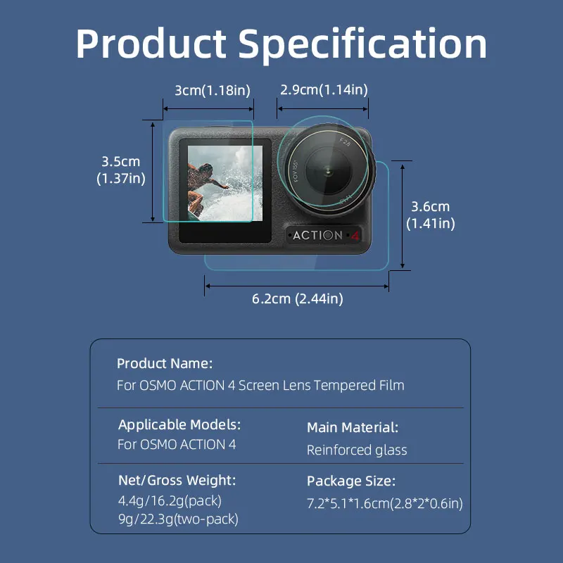 Contenu : 4 * protections d'écran avant 4 * protections d'écran arrière 4 * protections d'objectif 4 * outils d'installation, 1., Numéro de modèle - Spécialement conçu Compatible pour DJI Osmo Action 4,il s'adapte parfaitement à la caméra., 2., Verre trempé 9H - Protège votre écran des rayures et des éraflures. Ajustement parfait Des découpes précises assurent une protection complète de toute la surface de l'écran plat. Il suffit d'enlever la poussière, d'aligner correctement le protecteur et d'appuyer fermement. Simpeak Film de protection compatible avec DJI Osmo Action 4, [4+4+4 Il adhèrera parfaitement à votre téléphone sans laisser de bulles d'air, tout en préservant la sensibilité tactile., 5., Contenu : 4 protections d'objectif, 4 protections d'écran avant, 4 protections d'écran arrière et 4 outils d'installation. Simpeak Verre Trempé Compatible pour DJI Osmo Action 4 [4 4 4 Pack], Protection d'écran avant Protecteur d'écran arrière Film d'objectif, Dureté 9H, Anti-rayure, Haute définition Accessoire Dji Action 4 SUNNYLIFE – Verre Trempé Pour DJI Osmo Action 4 (2 Kit Lentille, écran Arrière, écran Avant) - Connect'oi Dji Osmo Action 4 Accessoires Simpeak Film de protection compatible avec DJI Osmo Action 4, [4 4 4 Pack] Protection en verre trempé, dureté 9H, anti-frottement, anti-empreintes digitales, anti-bulles : : High-techÀ propos de cet article 1. Numéro de modèle - Conçu spécialement pour DJI Osmo Action 4, s'adapte parfaitement à l'appareil photo. 2. Verre trempé 9H - Protège l'écran contre les rayures ou...
