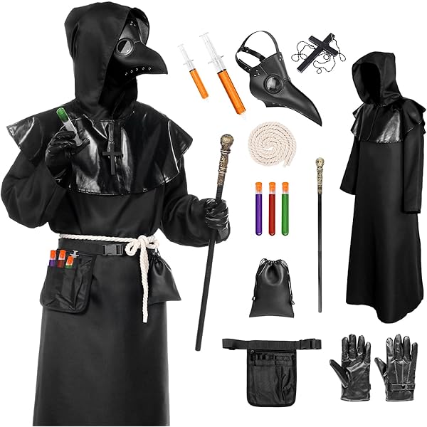 Symbolique et mystérieux : le costume d'Halloween convient à divers thèmes d'Halloween, des reconstitutions historiques aux événements steampunk et gothiques, offrant une option unique et polyvalente. Haute qualité et durable : fabriqué à partir de matériaux tels que le cuir, le latex ou le plastique, les versions d'Halloween du masque sont conçues pour le confort et une utilisation durable. Réglable et respirant : le masque de peste d'Halloween a un bandeau réglable à l'arrière, parfait pour la plupart des femmes, hommes et adolescents. Costume Steampunk Adulte Cape Gants Creepy Party Médecin De La Peste Masque Noir Rivet Long Nez Masques Steampunk Accessoires De Costume Pour Bal Masqué Fête D'Halloween Carnaval Cosplay Cape Capuche Gants Inclus Présentation du produit Kungfu Mall Masque gothique de médecin de la peste, masque rétro de style Steampunk pour cosplay, masque à bec et gants noirs, [35] Trous d’aération: Rendent le masque plus confortable à porter Accessoire de costume polyvalent : se marie parfaitement avec des capes, des gants et des chapeaux pour une tenue complète de médecin de la peste ou un ensemble d'horreur inspiré de Ghostface Masque de carnaval avec bec Banque de photographies et d’images à haute