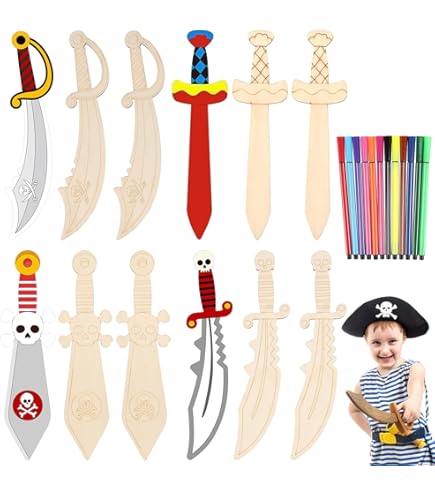Même les débutants peuvent créer de superbes œuvres avec cet ensemble d'épées en bois pour enfants. Petit sabre, épée de pirate, jouet en bois Bartl allemagne Contenu de l'emballage : ce kit créatif comprend 16 épées de pirate en bois de 4 motifs différents et 12 crayons de couleur de différentes couleurs. Favorise le développement et l'imagination : la décoration en forme d'épée de pirate en bois permet d'entraîner la motricité fine, de stimuler la créativité et d'enrichir l'imagination. Utilisation polyvalente : ce kit artisanal de sabre de pirate est idéal pour les fêtes d'anniversaire sur le thème des pirates pour enfants, les projets scolaires, les activités en classe et les cours d'artisanat créatif. Au fur et à mesure que la décoration se déploie, de merveilleuses histoires sur la chasse au trésor et la vie des pirates apparaissent, donnant vie aux jeux de rôle ! Avec ses nombreux modèles et sa quantité suffisante, ce kit est parfait pour réaliser des projets créatifs de bricolage avec les enfants. Sabre Pirate - Boutique en ligne sabre d'abordage - RMC Expérience DIY créative : créez des œuvres d'art uniques et réalisez des peintures avec ces épées de pirate. La surface en bois naturel est idéale pour peindre et décorer. Les épées en bois pour enfants sont petites et légères, faciles à transporter. Chemise pirate large modèle Ansgar, couleur bleue ⚔️ Boutique Épées Sabre Pirate Bois Peinture Cadeau KEMUZ 12 Épées De Pirate En Bois Couleur Pour Peindre Sabre Activité Créative Bricolage Bois Sûrs et faciles à transporter : les épées de pirate pour enfants sont fabriquées à partir de bois de buis de haute qualité, lisse et poncé, sans résidus ni bavures.