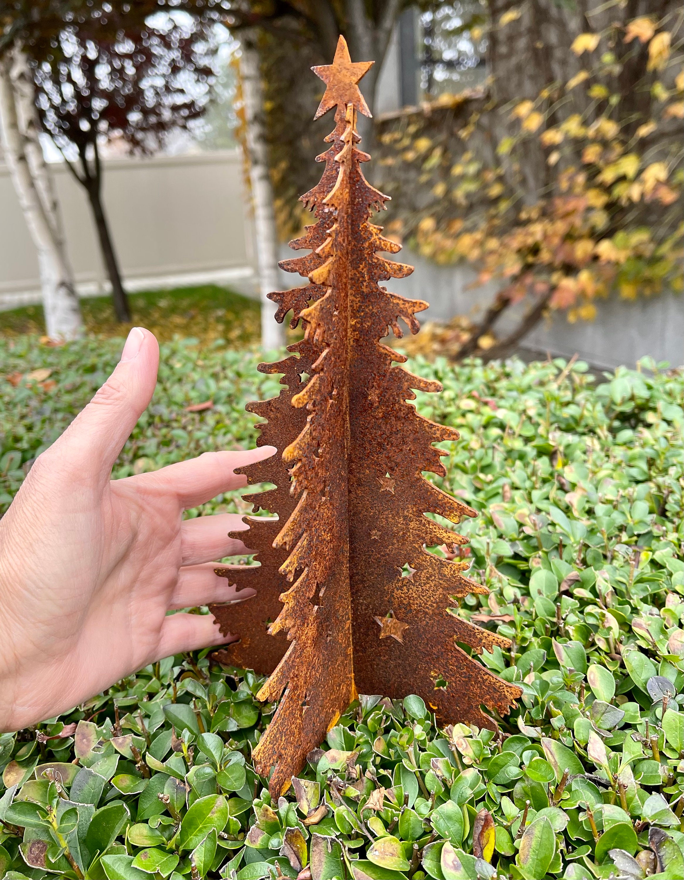 Arbre décoratif en métal rouillé | Un Jardin en Nord Taille parfaite : décoration de Noël d'extérieur en rouille 20 x 31 cm, sapin en métal 15 x 31 cm, arbres de Noël 14 x 31 cm (avec tige enfichable de 10 cm de long). 1 pièce Décoration murale en métal d'arbre de Noël vintage - Décoration de vacances de style allend antique, or, rouge, vert, rron, blanc, or - Fer robuste - Décoration d'intérieur/extérieur à suspendre Le piquet de plantes (arbre de Noël) dégage un charme romantique et nostalgique dans votre jardin ou sur le balcon. Matériau métallique : nos décorations de jardin en rouille de l'Avent sont rouillées artificiellement, tiges en métal marron avec un magnifique aspect rouillé. Les accessoires présentent de légères différences de rouille et différentes conditions météorologiques font que la décoration de jardin d'extérieur rouille à plusieurs reprises, ce qui est unique. La décoration de Noël pour l'extérieur attire les regards et prolonge la magie au-delà des murs de la maison. Guirlandes, suspensions et personnages lumineux donnent vie au jardin et aux façades Père Noël & renne en métal, aspect rouille, 2 pièces | acheter en ligne sur buttinette - loisirs Décoratif et résistant aux intempéries : la décoration de Noël en rouille peut être utilisée pour embellir les décorations funéraires de Noël, jardin, balcon, pelouse. Le bouchon stable à douille peut être utilisé partout où vous souhaitez décorer. Remarque : si le produit rouillé a une couleur de rouille inégale ou des rayures, ne vous inquiétez pas, la décoration rouillera naturellement après avoir été à l'extérieur.
