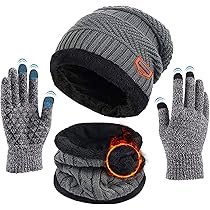 Gants : Gants chauds tricotés à cinq doigts avec doublure en polaire, offrant chaleur sans compromettre la souplesse des doigts, adaptés à un usage quotidien ou aux activités de plein air. Écharpe : L'écharpe d'hiver est dotée d'une conception double couche avec un tissu tricoté et une doublure intérieure en polaire, épousant la ligne du cou pour empêcher l'air froid de pénétrer et offrir une chaleur optimale au niveau du cou Design élégant : L'ensemble chapeau, écharpe et gants présente des motifs géométriques élégants, offrant un look simple mais sophistiqué qui s'accorde parfaitement avec diverses tenues d'automne et d'hiver, mettant en valeur votre personnalité et votre style Gant Bonnet Femme Tofern Ensemble De 3 Bonnets D'hiver En Tricot Pour Homme Et Femme Avec Longue U00e9charpe Et Gants Pour U00e9cran Tactile, Bleu Marine, Taille Unique Echarpe Et Bonnet Femme Plusieurs scénarios : Que ce soit pour les trajets quotidiens, les sports de plein air ou les loisirs et divertissements, cet ensemble trois pièces pour l'hiver offre une chaleur et une protection complètes, ce qui en fait le choix idéal pour l'automne et l'hiver Tissus conservant la chaleur : L'ensemble chapeau, écharpe et gants pour adulte est fabriqué à partir d'un tissu acrylique tricoté, offrant un toucher doux et confortable, d'excellentes propriétés respectueuses de la peau et une doublure en polaire pour protéger efficacement du froid Packs Bonnet, écharpe Et Gants Fille Ensemble Bonnet Et Gants Et U00e9charpe Pour Enfants, Chapeaux Avec Pompon, Cache-cou En Tricot, Chapeaux De Baseball Pour Adolescentes, Enfants, Tout-petits, Filles, Hiver Bonnet Homme Hiver Tricot classique et élégant : Bonnet et gants tendance tricotés avec précision, fabriqués à partir de fils mélangés, pour un look élégant et tendance, assorti à vos tenues d'hiver, qu'elles soient habillées, pulls, hauts ou autres tenues d'hiver formelles ou décontractées