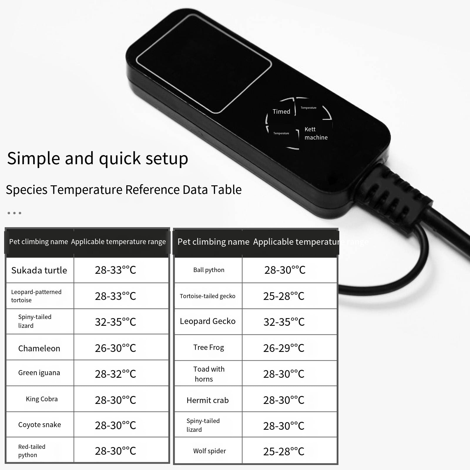 * Dimensions : 22 x 15,5 cm, 33 x 18 cm., Couleur : noir., *Alimentation : 5 V 2 A., * Puissance : 7,5 W/8,5 W. Ou placez une couche de sable / écorce dans le réservoir pour éviter la dissipation directe et la chaleur. Chauffage Terrarium Réglable KABASI Tapis Chauffant Pour Reptiles De 2e Génération 15 W/25 W Non Adhésif Avec Réglage De La Temperature Impermeable Pour Terrarium Et Tortues Coussin Chauffant Pour Lézard Lit coffre 140 x 200 cm avec sommier,Rangement lit,Matériau PU noir Contrôle réglable : créez l'environnement chaud parfait pour vos reptiles avec 3 réglages de chaleur allant de 25 à 50 °C vous permettant de personnaliser la chaleur pour différentes espèces et saisons tandis que l'alimentation USB 5 V le rend économe en énergie Sécurité et commodité : doté d'un câble de 1 m et d'une faible consommation d'énergie de 7 5 W/8 5 W, ce coussin chauffant comprend des directives claires pour une bonne circulation de l'air garantissant un fonctionnement sûr 24 heures sur 24 pour vos animaux de compagnie Matériau durable : fabriqué à partir de cuir PU souple, ce coussin chauffant flexible résiste à une utilisation régulière tout en étant facile à nettoyer et son design flexible assure le confort sous diverses configurations de réservoir sans se fissurer Options d'installation polyvalentes : conçu pour une utilisation sous des réservoirs d'eau ou des boîtes d'élevage, ce tapis de 22 x 15 x 5 x 33 x 18 cm fonctionne avec une couche de sable ou de copeaux d'écorce pour éviter directement tout en fournissant une chaleur constante à la plupart des petits reptiles CHAUFFAGE AMOUNE Tapis Chauffant Reptile-Coussin Chauffant Réglable... * Matériau : cuir synthétique. * Réglages de chaleur personnalisables : doté d'un contrôle réglable avec des paramètres allant de 25 à 50 degrés, il vous permet de créer un environnement chaleureux qui répond aux besoins spécifiques de vos animaux de compagnie. Pour des raisons de sécurité, il s'agit de fournir un espace pour la circulation de l'air.