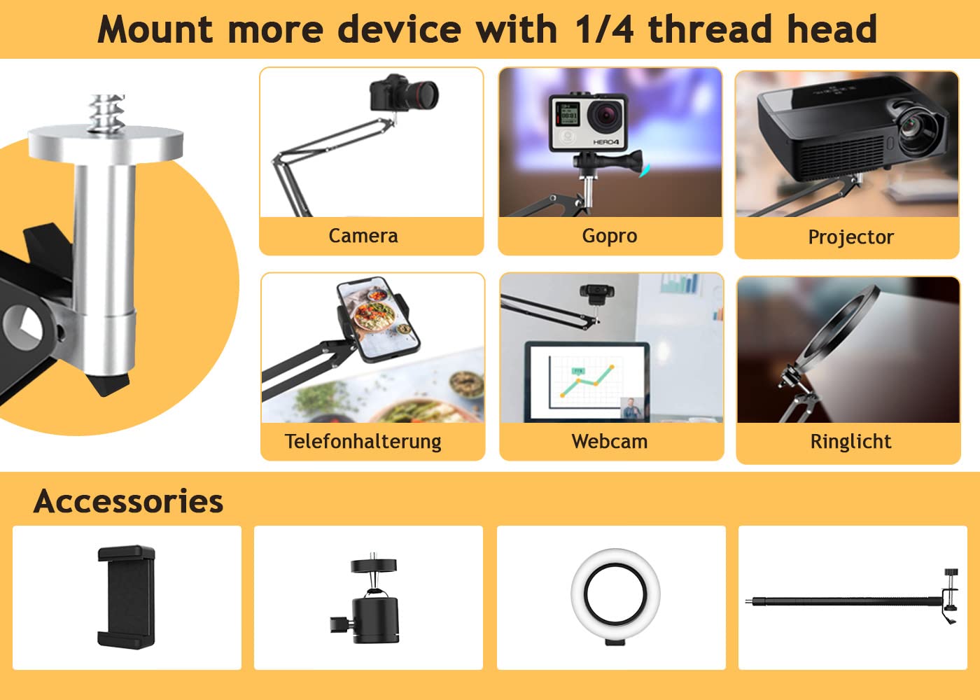équipement Vlogging Streaming Trépied Pour Téléphone Portable Avec Port 1 M,Support Pour Bureau,Pour Accessoire Vidéo Streaming Cuisine Bricolage Large compatibilité : la tête de trépied et la tête de clip ont un filetage universel 1/4, compatible avec tous les iPhones, webcams Logitech Brio 4K, C930e, C920, C920s, C922, C922x, C615, etc. Smartphone avec anneau lumineux | Vecteur Gratuite Petits prix et livraison gratuite dès 25 euros d'achat sur les produits Strixorn. Commandez Overhead Trépied de téléphone portable avec anneau lumineux, support flexible pour appareil photo avec anneau lumineux LED, 3 couleurs de lumière 10 luminosités, support de bureau pour débutant Es ist geeignet für verschiedene Top-Down-Overhead-Aufnahmen, Videoaufnahmen, Kochen, Backen, Basteln, Zeichnung Videos, Online-Unterricht, Nagelkunst Anforderungen usw. Vous pouvez les combiner de différentes manières pour répondre à différents besoins Trépied pour téléphone portable, perche à Selfie B... – Grandado Outil YouTube débutant pour déballer des vidéos, des émissions, des enregistrements vidéo et des photos. Description du produit Overhead Trépied pour téléphone portable avec lumière Pour smartphone - Pour appareil photo compact - Pour webcam - Pour caméra 6/8/10 - Pour GoPro - Pour mini projecteur. Il est monté en toute sécurité sur toute surface plane de 5 cm d'épaisseur où vous le placez. Flexible à 360° Le bras de flèche est entièrement flexible, de sorte que vous pouvez choisir l'angle idéal avec une visualisation confortable. La pince en C mise à jour est fermement réglée, et le tampon éponge sur la pince pourrait protéger votre table ou votre bureau sans rayures. [ Bras à clip extra flexible ] Le bras de flèche en ciseaux, la rotule, la pince en C, le support de clip de téléphone et le bras de serrage extra flexible qui permettent à vos appareils multiples (par exemple téléphone portable, appareil photo léger, webcam, lumière annulaire, mini projecteur) offrent différents scénarios d'utilisation. L'anneau lumineux LED est alimenté par USB, vous pouvez utiliser une banque d'alimentation, un chargeur mural, un ordinateur portable, etc., pour l'alimentation Pliable et léger Le design léger et pliable permet de plier facilement le trépied pour le ranger ou le transporter.