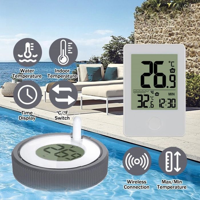 Mesure de haute précision : le thermomètre de piscine numérique utilise un capteur de haute précision et transmet les données par radio toutes les secondes. Thermomètre Piscine Connecté Netatmo Thermomètre De Piscine Sans Fil Solaire - Sonde Flottante Avec Écran LCD Pour Température De L'Eau Et Ambiante Sonde Température Eau Thermomètre Solaire De Piscine Numérique Sans Fil Avec Écran Lcd[H558] - Jardin Fiable : durable et robuste, même dans des conditions météorologiques difficiles. Contenu : 1 appareil principal pour thermomètre de piscine. Spécifications: Temps d'affichage : option 12/24 heures. Polyvalent : idéal pour piscine, jacuzzi, aquarium, étang, bain de bébé ou spa. Étanchéité IPX67 : le capteur du thermomètre de piscine numérique est étanche IPX67 et fabriqué en plastique de haute qualité. Thermomètre de piscine numérique sans fil avec capteur de piscine, écran LCD, thermomètre sans fil, thermomètre d'étang, thermomètre flottant, thermomètre pour piscines, baignoires, piscines Mesure précise : précision de ± 1 °C et transmission radio avec une portée de 60 m pour une surveillance facile. Thermomètre Piscine Solaire Récepteur LCD Température Thermomètre Piscine Numérique Infactory - Sans Fil, IPX8 Étanche - Avec Récepteur LCD - Pour Bassin Extérieur Thermometre Piscine Solaire Connecté Smartphone Plage de température (pièce) : de -9,9 °C à +50 °C. Utilisation polyvalente : le thermomètre de piscine est idéal pour l'intérieur et l'extérieur, y compris les piscines, les jacuzzi, les étangs à poissons, les aquariums, les baignoires pour bébés, les spas et tous les autres types d'endroits où la mesure de la température de l'eau est importante Pile : 1,5 V AAA (non incluse). Installation facile : le thermomètre de piscine L'installation numérique de l'appareil est simple : il suffit d'insérer des piles AAA et de placer le capteur dans l'eau. Installation facile : thermomètre à eau Installation rapide avec piles AAA, prêt à l'emploi. Charge maximale : Portée sans fil : 60 m. La précision de mesure du thermomètre de piscine est de ± 1 °C et la plage de connexion sans fil maximale est de 60 mètres, ce qui vous permet de surveiller facilement la température. 1 manuel d'utilisation (en cinq langues) Réglages : Celsius ou Fahrenheit, température de l'eau en temps réel et température ambiante Étanchéité IPX67 : protection contre l'eau et la neige, fiable même en cas de contact prolongé avec l'eau.