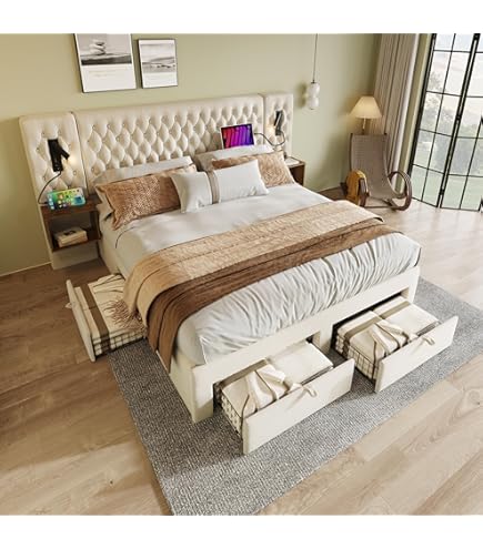Compartiment de rangement intégré dans la tête de lit : Le chevet dispose d’un compartiment de rangement intelligent avec un couvercle escamotable, parfait pour y ranger livres, lunettes ou chargeurs. EN STOCK : Lit adulte 160x200 cm, avec éclairage led, ports de charge usb et type-c, velours, gris. pas cher - Retrait & Livraison - Paiement 4X disponible. Chambre adulte à prix discount Informations sur le produit : Couleur principale :Beige/Gris Matériau principal : lin + MDF Style du produit : moderne Type de produit : lit avec rangement Pays d'origine : Chine Capacité de charge maximale: 300kg Taille du produit : 140x200cm lit capitonné (B x T x H) :218 x 145 x 110 cm 57kg 160x200cm lit capitonné (B x T x H) :220 x 166 x 111 cm 58kg Convient à la taille du matelas: 140x200cm/160x200cm Épaisseur recommandée du matelas : 20-25 cm Remarque : ✅Toutes les dimensions sont approximatives,Des erreurs de 2 à 3 cm peuvent se produire. Une solution pratique qui optimise chaque centimètre d’espace tout en facilitant l’accès aux objets du quotidien. Adapté à tous les styles : Que votre intérieur soit moderne, scandinave ou industriel, ce lit s’intègre facilement dans n’importe quelle décoration. Contrôlable via une télécommande ou une application smartphone, il propose plus de 60 000 couleurs, des modes dynamiques, une fonction minuterie et une synchronisation musicale. Afin de réduire les risques de dommages pendant le transport, notre lit de 140 x 200 cm est livré en 2 colis, et notre lit de 160 x 200 cm est livré en 3 colis, qui peuvent ne pas arriver le même jour. Lit coffre adulte 160x200cm Lit double Lit rembourré en lin avec L'accès facile à ce coffre permet de garder vos draps, couvertures ou autres objets bien organisés tout en préservant l'ordre dans la chambre. ✅Ce produit ne comprend pas de matelas ✅Nos produits sont accompagnés d'instructions de montage claires, faciles et rapides à suivre. Système de rangement pratique : Grâce à son mécanisme hydraulique intégré, ce lit coffre offre un espace de rangement dissimulé sous le sommier. Il intègre un système de rangement hydraulique, un compartiment dans la tête de lit, un éclairage LED personnalisable (60 000 couleurs, contrôle via app ou télécommande) ainsi qu’un port USB Type-C, le tout s’adaptant à tous les styles déco pour un confort moderne et optimisé Lit Moderne Avec éclairage PUGSDRLY Lit Double 160x200 Avec Sommier à Lattes,Lit 2 Places Avec Tête Capitonné,Tissu De Velours,Design Rivets,Pieds En Bois,pour Enfant Adolescent Adulte,sans Matelas,Beige Clair Lit Double Led Usb Matériaux de qualité : Ce lit double allie un revêtement en lin sélectionné à des panneaux MDF résistants, offrant une combinaison élégante de texture naturelle et de solidité.