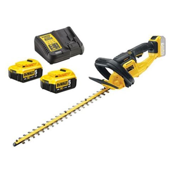 TAILLE HAIE XR 18V BRUSHLES DEWALT COUPES RAPIDES : Équipé d'une lame de 55 cm avec un écart de lame de 25 mm pour tailler rapidement et facilement les haies Outil Multifonction Dewalt DEWALT - Taille-Haies Brushless XR 18V 5Ah Li-Ion - DCM563P1-QW - Taille Haie Électrique Sans Fil Taille Haie Dewalt 55 Cm Pesant seulement 3,2 kg, il dispose de poignées ergonomiques pour une manipulation facile. (*Par charge, avec une batterie DEWALT DCB184, mesurée à vide; batterie vendue séparément., ) CONTRÔLE COMPLET : La conception de la poignée en D permet une utilisation facile dans différentes positions de la main. Conçu pour répondre aux besoins des jardiniers amateurs comme professionnels, cet appareil assure une coupe rapide grâce à son écartement des dents de 25 mm, tout en garantissant une autonomie de 75 minutes par charge. Découvrez comment cet outil peut transformer votre expérience de jardinage Taille-haie 18V DEWALT DCM563PB-XJ guide 55cm (vendu sans batterie Le crochet pour montage mural permet un rangement pratique, et il est compatible avec un accessoire balai pour le nettoyage des débris (vendu séparément). PERFORMANCE ININTERROMPUE : Jusqu’à 75 minutes d’autonomie*, pour tailler vos haies du début à la fin sans avoir besoin de recharger. Son design fin améliore la maniabilité, tandis que la poignée en forme de D garantit un contrôle total.