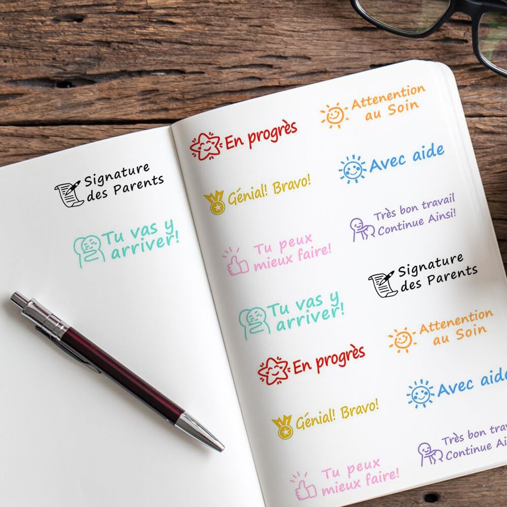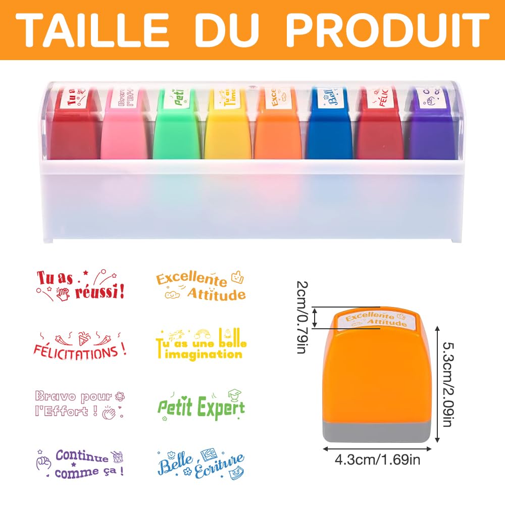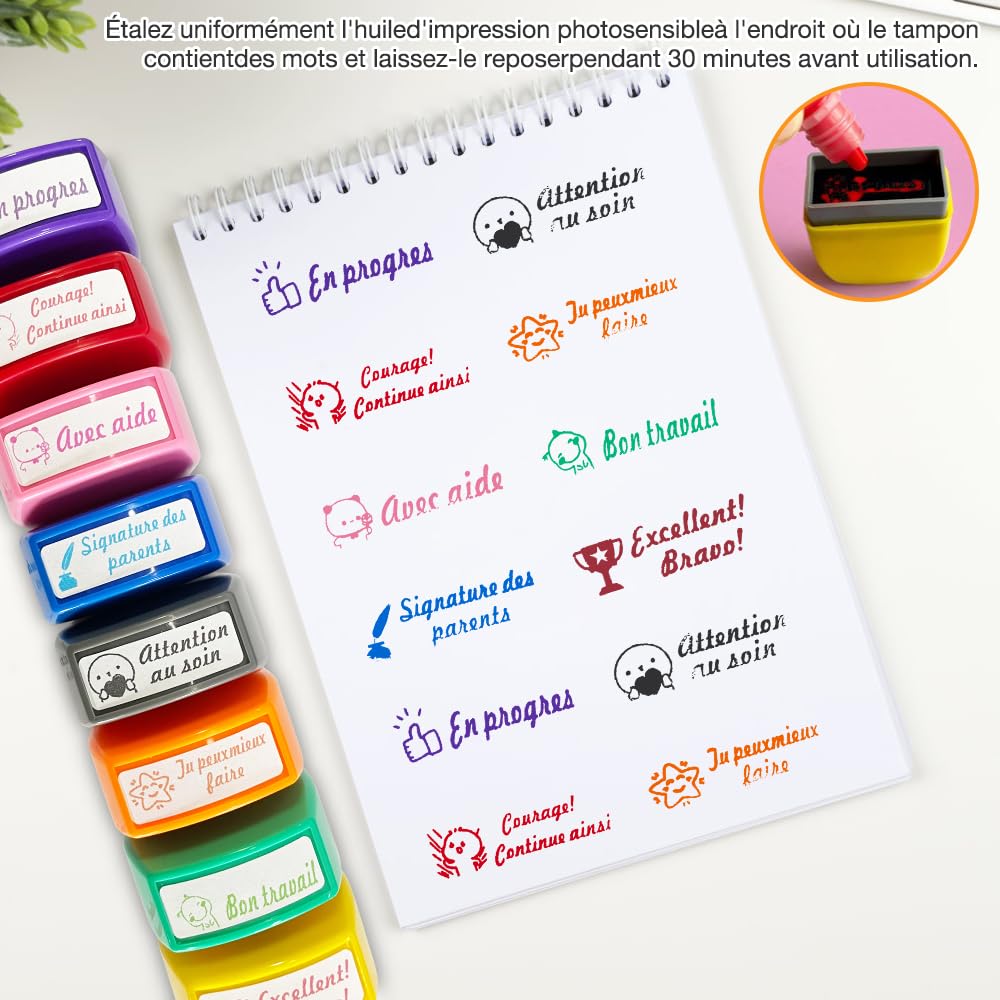 Notre tampon enseignant utilise l’encre à base dhuile de haute qualité, plus sûre, saine et sans danger pour les enfants, vous pouvez donc lutiliser en toute confiance. Caractéristiques du produit : Méthode d'impression : auto-encreur Quantité : 8 tampons français Matière : plastique ABS Taille du produit : 13*33mm Taille du motif : 13*33mm Avertissement De Sûreté 1 8 PCS Tampons Encreurs Enseignants]: Boîte de 8 tampons enseignants français colorés, ce qui ne nécessite pas un tampon encreur supplémentaire et peut être automatiquement encré, le rend plus pratique à utiliser Matériel de haute qualité] Ce tampons enseignants français est fabriqué dans un matériau de haute qualité, robuste et durable. Les motifs et les lignes du tampons enseignants français sont clairs et l'encre ne s'efface pas facilement Ces tampons personnalisés facilitent la tâche des enseignants pour noter, féliciter et reconnaître le travail des élèves. Tampons Enseignants | Hiboux Mignon Coffret de 8 Tampons Auto-Encreurs Corrections Idéal pour noter les devoirs ou utiliser en classe comme récompense pour les étudiants. 🧑🏫[Cadeau Idéal]: Ces tampons enseignants français vives peuvent être utilisé pour corriger les devoirs et les récompenses de classe, et pour communiquer avec les parents tout en augmentant lenthousiasme des enfants pour lapprentissage. Tampon Maitresse D'école AVCXEC 8 PCS Tampons Encreurs Enseignants, Tampons Enseignants Franu00e7ais, Plastique Tampon Auto Encreur Enfant Avec Bou00eete, Tampon Ecole Pour Enseignant, Pour La Motivation Et Encourager Les U00c9lu00e8ves(C Tampons 🧑🏫[Matériel Sûr et Sain]: Le tampon professeur est fabriqué en plastique ABS robuste, ce qui est solide, durable et a une durée de vie plus longue. Description du produit Fonction: 1., La santé et la sécurité sont les plus importantes! Notre tampon enseignant utilise l’encre à base d'huile de haute qualité, plus sûre, saine et sans danger pour les enfants, vous pouvez donc l'utiliser en toute confiance., 2., Tous les tampons sont bien placés dans une boîte de rangement transparente, portable et pratique, et peuvent être utilisés comme cadeaux pour les enseignants., 3., Lorsque l'encre intégrée est épuisée, vous pouvez ajouter l'encre vous-même en vous référant aux étapes sur l'image, l'opération est très simple., 4., Chaque tampon ne nécessite pas un tampon encreur supplémentaire et peut être automatiquement encré, ce qui le rend plus pratique à utiliser., 5., Le texte et des motifs intéressants et vifs sur le tampon peuvent stimuler l'enthousiasme des élèves pour l'apprentissage., 6., L'impression est durable, l'effet d'estampage est clair, les lignes sont claires et il n'est pas facile de s'estomper., 7., Le tampon est livré avec une étiquette sur le dessus pour faciliter la recherche de celui que vous voulez.