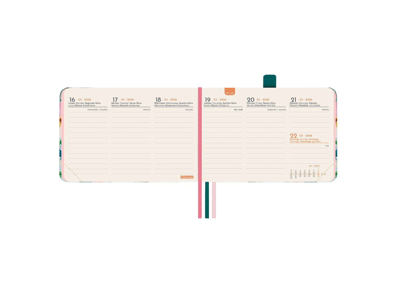 Agenda 2026 Finocam – Semaine Sur 2 Pages Présentation Verticale | Janvier – Décembre (12 Mois) | Agenda Annuel 2026 | Reliure Couverture Rigide Matelassée Berlin – Cotton – International Agenda A4 2026 Semainier Contenu : l'annualité de l'agenda comprend les informations relatives à l'onomastique et aux jours fériés. À propos de cet article DURÉE : Janvier 2026 – Décembre 2026 (12 mois) INTÉRIEUR : 1 jour par page. Large espace de note pour chaque jour. Avec heures. Une pleine page pour le samedi et le dimanche. Agenda multilingue : anglais, français, italien, allemand, espagnol et portugais. Le calendrier indique les jours fériés dans les pays suivants L'agenda Finocam Open Nova pour l'année 2026 est conçu pour offrir une organisation optimale tout au long de l'année. Ce semainier vertical couvre la période de janvier à décembre 2026, avec une vue hebdomadaire verticale qui permet de visualiser la semaine complète Durée : janvier 2026 à décembre 2026 (12 mois) L'agenda dispose également d'autres contenus supplémentaires : données personnelles, calendriers, calendriers, planning mensuel quadrillé, dates de mise en évidence, feuilles de tâches et annotations et feuilles téléphoniques, adresses et e-mails. AGENDA ANUAL FINOCAM 2026 DUOBAND BLOC DE NOTAS SEMANA VISTA VERTICAL 117x181 Mm 381201026 381203026 381206026 Article en espagnol avec annualité multilingue : espagnol, anglais, portugais, galicien, catalan et basque. Le moment est venu. Coins micro-perforés pour localiser rapidement le jour/semaine en cours. Idéal à emporter partout avec vous. L'annualité contient des informations intéressantes et d'autres contenus supplémentaires. Affichage de la semaine complète à la verticale. Intérieur : vue hebdomadaire verticale. Avec ruban tricoté, élastique et anneau porte-stylo pour emporter toujours avec vous un élément d'écriture.