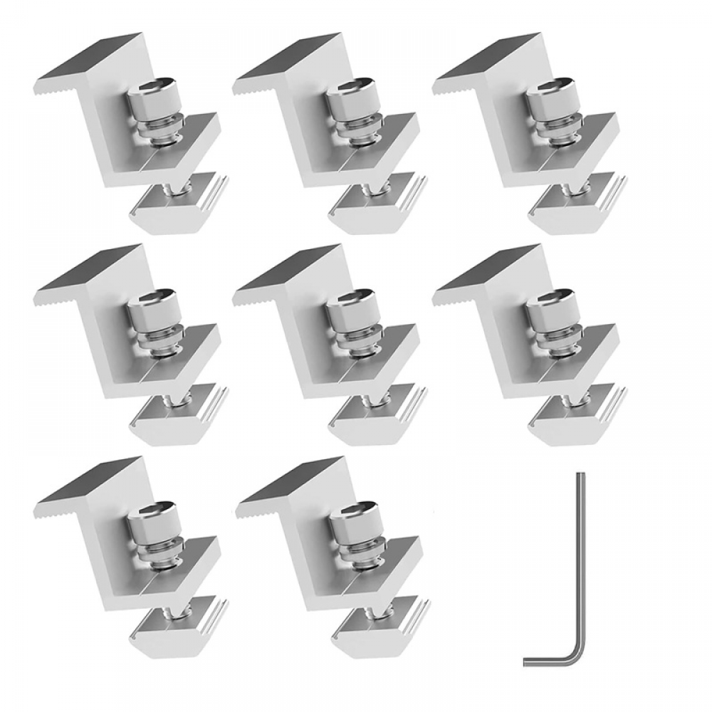 Excellente Qualité: Fabriqués en alliage d'aluminium de haute qualité, les rails fixation panneau solaire sont résistants à la rouille, à la corrosion, aux UV, au vent et à la pluie. Large application:Cette fixation de panneau solaire convient aux cadres solaires de 30 mm,convient au montage et à la fixation de panneaux solaires sur des toits plats ou en pente de yachts,voitures,bateaux,maisons,etc Avantages du produit : - Nous proposons un ensemble de 8 Pinces de Montage de Panneau Photovoltaique en alliage d'aluminium, résistant aux agressions extérieures, à la lumière directe du soleil et à la pluie, répondant à vos besoins spécifiques en termes de quantité et d'utilisation. Durables et élégants, ils constituent un choix idéal pour la fixation de panneaux solaires Ils peuvent être montés verticalement ou inclinés, ce qui les rend idéaux pour le montage de petits panneaux solaires Conception en Z : Les rails Fixation Panneau Solaire présentent une conception en Z qui s'adapte parfaitement au panneau solaire, offrant un support fiable et stable. Caractéristiques du produit : - Comprend : 8 support panneau solaire, 8 vis et 1 clé en L - Compatible avec : panneaux solaires de 30 mm - Couleur : Noir - Matériau : Alliage d'aluminium Remarques : - Notre support panneau solaire est compatible avec les panneaux solaires de 30 mm. Panneau Solaire Camping-car 16 Pcs Fixation Panneau, Supports De Convient aux panneaux solaires de 30 mm - La surface lisse et sans bavures du Support Panneau Solaire en Aluminium garantit une excellente qualité et protège vos mains des piqûres lors de l'installation. Spécifications du Produit: Ce kit comprend 8 rails support panneau solaire sol et le nombre correspondant de vis. Vous recevrez] : 8 paires de fixation panneau solaire argentés.[Matériau de haute qualité] : Ce support de module solaire est fabriqué en alliage d'aluminium de haute qualité avec une surface anodisée, soigneusement polie et polie, sans bavure, haute dureté, haute résistance, résistance à l'usure, résistance à la température élevée, résistance à l'humidité, pas... Support Panneau Solaire SHINING HOUSE Lot De 8 Support De Fixation Panneau Solaire Kit 35mm Supports De Fixation Photovoltaique En Forme De Z Avec Cle Hexagonale Supports Fixes Pour Modules Solaires 84043230 Veuillez vérifier l'épaisseur de votre panneau solaire avant d'acheter afin d'éviter tout achat inapproprié.