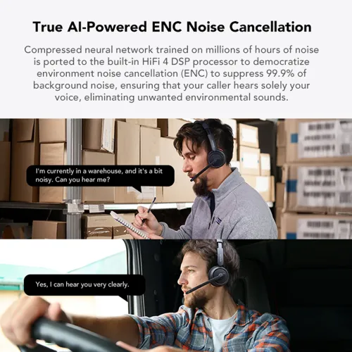 Plus besoin de recharger sans arrêt. Jusqu’à 45H d’écoute avec une charge de 2 heures seulement ! 1 Travailler au Bureau 2 Télétravail à Domicile 3 Télétravail 4 En Conduite 5 Centre d’Appels Que ce soit dans un environnement animé ou un cadre bruyant, votre interlocuteur n'entendra que votre voix, garantissant une communication cristalline., 【Bluetooth 5., 4 & Connexion Multipoint】Profitez d'un appairage rapide et d'une connectivité améliorée avec la technologie Bluetooth 5., 4, élevant votre expérience sans fil. 1 Coussinets Souples 2 Oreillettes Rotative 3 Arceau extensible 4 Micro Rotatif à 250° Le microphone à perche rotatif à 250° permet un port polyvalent à gauche et à droite, tandis que les coussinets d'oreille rotatifs à 180° s'adaptent à différentes formes de tête. 1 Deux Options de Charge 2 Longue Autonomie 3 Connexions Multiples 4 Compatibilité Étendue 5 Qu'y a-t-il dans la Boîte Fonctionne parfaitement avec les principales plateformes de conférence telles que Zoom, Teams, WebEx Connectez le Casque à Deux Appareils Simultanément Cela vous permet de passer d'une réunion en ligne sur PC à un appel entrant sur votre téléphone., Technologie Bluetooth 5., 4 Améliorée Le Bluetooth 5., 4 du casque offre une connexion plus rapide et plus stable dans un rayon de 10 mètres Que faire si les micros cessent soudainement de fonctionner et qu’un redémarrage du casque est nécessaire ? Téléchargez NearSync sur le site de Nuroum et installez-le sur votre PC Connectez votre casque à votre PC via le câble USB et lancez NearSync Choisissez la version la plus récente V020., 2025., 04., 29 mic000108 pour mettre à jour le firmware du casque Jabra Evolve2 85 Casque PC Sans Fil - Casque Audio certifié icrosoft... Pourquoi n'entends-je aucun son lorsque le casque est connecté à mon PC ? Veuillez vous assurer que les paramètres audio de l'ordinateur et du logiciel sont correctement configurés. 【Confort Toute la Journée & Design Ergonomique】Priorisez le confort lors d'une utilisation prolongée grâce à la conception réfléchie du casque. Choisissez le confort sans compromis pour un port toute la journée, ce qui en fait un choix idéal pour vos besoins professionnels ou personnels. Confort Continu Le casque sans fil HP31D est équipé de coussinets en mousse à mémoire de forme. Vite ! Découvrez l'offre HP31-D Casque Bluetooth sans Fil avec Micro,Casque à Réduction de Bruit ENC avec Station de Charge,Clé USB-A&C/Bluetooth/Dongle,45 pas cher sur . Livraison rapide et Economies garanties en oreillette bluetooth Profitez d'une utilisation prolongée avec jusqu'à 35 heures d'appels continus et 45 heures de lecture musicale sur une seule charge. Pourquoi mon casque se déconnecte-t-il soudainement après une période d'utilisation ? Lorsque je me connecte à un ordinateur via une clé USB ou Bluetooth, si l'ordinateur passe en veille prolongée, le casque se déconnecte également. Casque Sans Fil Nuroum HP31D Avec Annulation De Bruit AI Support De Charge Et Microphones Integres Parlez à Votre Façon Le bras de micro flexible pivote à 250° pour être toujours exactement là où vous le souhaitez. Avec une portée remarquable allant jusqu'à 10 mètres, le HP31D vous permet de vous déplacer librement tout en maintenant une qualité sonore premium. La connexion multipoint Bluetooth permet d'appairer simultanément deux appareils, facilitant ainsi le passage entre des réunions sur ordinateur et des appels entrants. Le dongle USB inclus s'adresse aux ordinateurs sans Bluetooth, garantissant une large compatibilité avec les principales plateformes telles que Teams, Zoom, Webex et plus encore. 【Casques Microphones avec Annulation de Bruit ENC Alimentée par IA】Immergez-vous dans une qualité d'appel sans précédent avec l'annulation de bruit ENC alimentée par IA du HP31D. Il suffit d’appuyer sur le bouton et d’entendre “ sourdine activée ” : le casque passe en mode muet. Tirant parti du processeur DSP HiFi4 et d'un réseau neuronal compressé formé sur des données de bruit étendues, ce casque sans fil avec microphone réalise une impressionnante suppression de bruit de fond à 99,9 %. Casque Appel Clair Bluetooth 5.4 Nuroum HP31D (3rd Gen) Professionnel Casque Bluetooth Sans Casque Jbl Bluetooth Sans Fil La station de charge incluse et le câble USB améliorent la flexibilité, vous permettant de recharger sans effort. Pour des raisons d'autonomie, le casque s'éteint automatiquement après 15 minutes sans connexion.