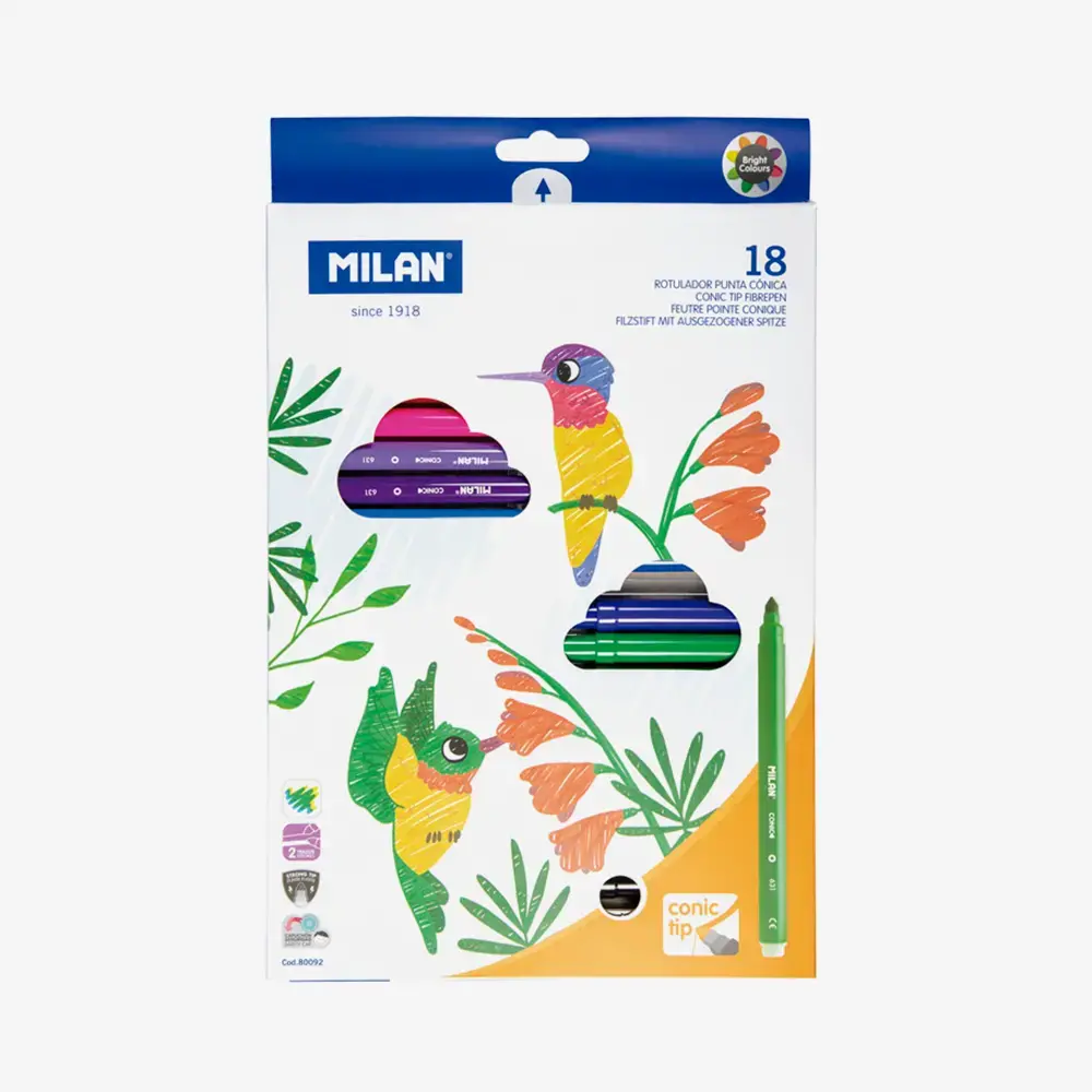 MILAN a plus de 70 modèles enregistrés développés par le département R & D. Description du produit La conception, la fonctionnalité et la combinaison de couleurs et de matériaux sont des éléments communs à tous les produits MILAN. L'innovation est présente depuis le début de l'entreprise. Boîte De 18 Feutres À Eau Milan - Couleurs Brillantes Et Lavables 8411574047759 Boîte 18 stylos coniques à base d'eau ilan 1765679220 – Pack de 20 stylos Stylos Aquarelle Dessin écriture Boîte 18 Feutres Pointe Conique Stylos Coniques MILAN Base D'eau Découvrez notre gamme de stylo de qualité et de renomée européenne