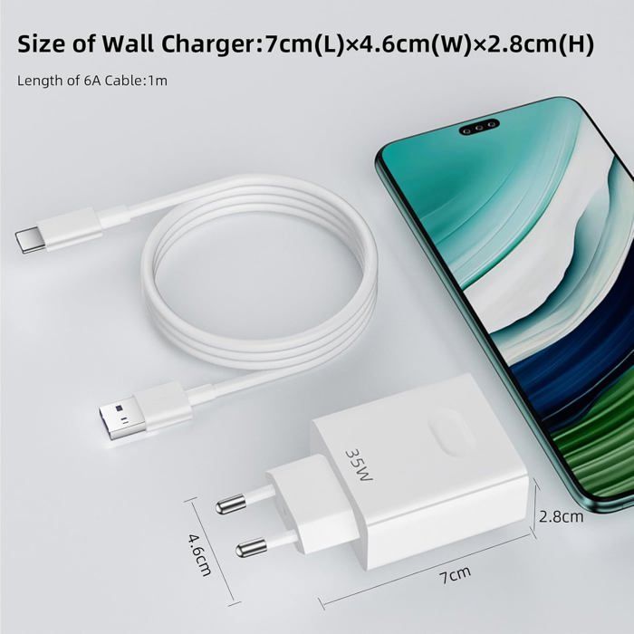 Chargeur Honor 400 Chargeur Usb Supercharge 35W Avec Câble Usb C 1M Pour Honor Honor Pad X8a 35W Supercharge:pour Honor X70i 400 Lite Pad X9a X8c X6C Pad V9 X9c Smart Play9T X7c X60 200 Smart X60i Pad 9 Pro Play 60 Plus X7b 5G (50 MP) Magic V Flip X6b 200 Lite 90 Smart X7b 5G X50 GT Pad 9 X8b Magic6 Lite X7b X50i+ X9b/Play 8T Play 50 Plus X50i 90 Pad V8 Pro., 22., 5W Supercharge:for Honor Pad V8 Play7T 70 Lite 70 Lite X8a X7a Play 40 Plus Play6C X8 5G Pad 8 Play6T X7 X8 Play 30 Plus X30 Max X30i. Câble USB C Supercharge vers USB A 2.0 0,3 m flexible pour Mate 30 20... Prend également en charge la SuperCharge Huawei/Honor de 22,5 W. Avec ce chargeur USB 35W, les téléphones Huawei et Honor peuvent être chargés à 55% en 30 minutes Le boîtier en aluminium et les ports soudés au laser empêchent les ruptures et les fuites de fils. Emballage : 1 câble Supercharge de type C 5 A de 3,3 pieds ; 1 chargeur SuperCharge 35 W pour Honor. Chargeur 35w et câble usb-c à type-c (PAS APPLE Originale) (Neuf avec (Comment effectuer la SuperCharge ? 1., Vous utilisez Huawei et Honor ; 2., votre téléphone supporte 35w/22., 5w SuperCharge;) Chargeur USB Supercharge 35W pour Honor Vidéo de marchand Prend également en charge la SuperCharge Huawei/Honor de 22,5 W. Peut résister à plus de 15 000 tests de flexion. Conception durable:Le câble de type C est conforme aux certifications de sécurité électronique. 3 Si votre téléphone portable ne supporte que la Supercharge 15w, même si vous utilisez ce chargeur 35w, il ne peut atteindre que la puissance 15w. Contenu : 1 câble Supercharge 5 A de type C de 1 m ; 1 chargeur SuperCharge 35 W pour Honor., Conseils pratiques : 1., ce chargeur 35w Supercharge ne supporte que la charge rapide des téléphones portables Honor et Huawei, les autres marques ne peuvent utiliser que la charge ordinaire (5V/2A). 35w SuperCharge pour honor/huawei:Ce câble USB C pour HONOR 400 Lite 5G supporte la SuperCharge jusqu'à 35W Max (11V/3., 5A).