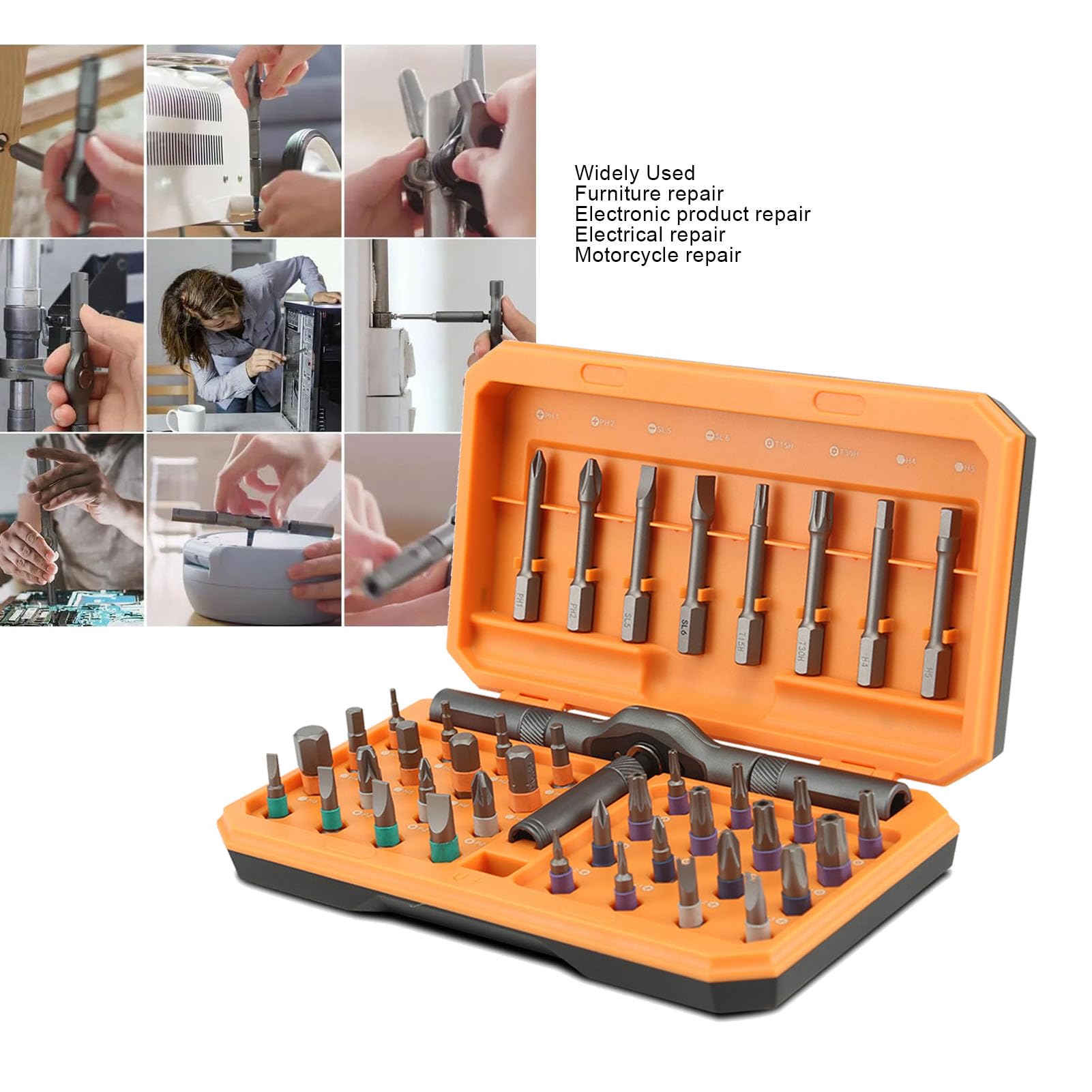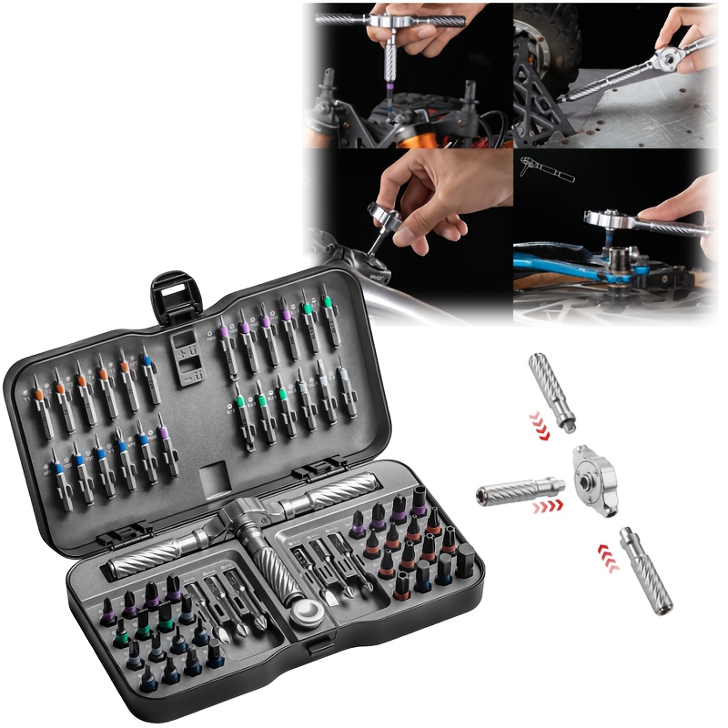 Les embouts peuvent être empilés pour les espaces restreints. Économisez 80 % d'énergie, réduisez la fatigue du poignet. 【Set complet 42 pièces】Le set de tournevis magnétiques 42-en-1 comprend 32 embouts courts (25mm) et 8 embouts longs (45mm) de types variés (PH, SL, Torx, Hex, PZ, U, etc., ). Grâce à une usinage CNC de haute précision, ce tournevis a cliquet offre une excellente durabilité et une résistance à l'oxydation, parfait pour une utilisation à long terme. ), codés par couleur et faciles à identifier. Une chambre de magnétisation intégrée ajoute du magnétisme aux embouts à tout moment Jeu De 31 Tournevis Cliquet F-T EMTOP - EBST03102 【Design à cliquet efficace】Le set de tournevis à cliquet dispose d'un système d'engrenage à 58 dents, permettant une utilisation à une main. Sa taille compacte le rend facile à transporter – que ce soit à la maison, au travail ou en déplacement, il est toujours à portée de main. Les embouts codeurs couleur sont faciles à identifier, idéaux pour l'électroménager, l'assemblage de meubles, les réparations de vélos, la maintenance informatique et plus encore. Découvrez le SOARFLY Jeu de tournevis magnétiques 42 en 1 – pratique, durable, polyvalent, avec un tournevis cliquet qui révolutionne vos travaux ! Tournevis De Précision Ensemble De Tournevis U00e0 Cliquet 42 En 1, Ensemble De Tournevis Magnu00e9tiques Multi-embouts Avec Poignu00e9e U00e0 Cliquet Amovible, Kit D'outils De Ru00e9paration Domestique Pour Meubles, Voiture, Ordinateur Kit Tournevis Kit de tournevis 42 en 1 : le jeu de tournevis à cliquet magnétique comprend 40 embouts magnétiques en alliage d'acier au chrome-molybdène (S2), avec un diamètre de 6,35 mm, complété par une poignée unique avec un porte-embout magnétique Adapté aux électroménagers, vélos, ordinateurs, etc. **Design à cliquet efficace** Ce tournevis cliquet dispose d'un système d'engrenage à 58 dents, avec un angle de balancement de 6,2°. Toujours à portée de main, où que vous travailliez. Une usinage CNC haute précision garantit une résistance à l'oxydation et une longévité, faisant de ce tournevis a cliquet un outil de confiance. **Magnétisme puissant** Ce jeu de tournevis magnétiques avec embouts fortement magnétisés : maintien solide des vis, pas de glissement, changement d'embout rapide – idéal pour des travaux précis sur de petits appareils, renforçant l'efficacité du tournevis à cliquet. 【Compact et Portable】L'ensemble est livré avec une boîte de rangement portable et robuste (16,6x9,45x3,95cm) où toutes les pièces sont stockées en toute sécurité et de manière organisée.