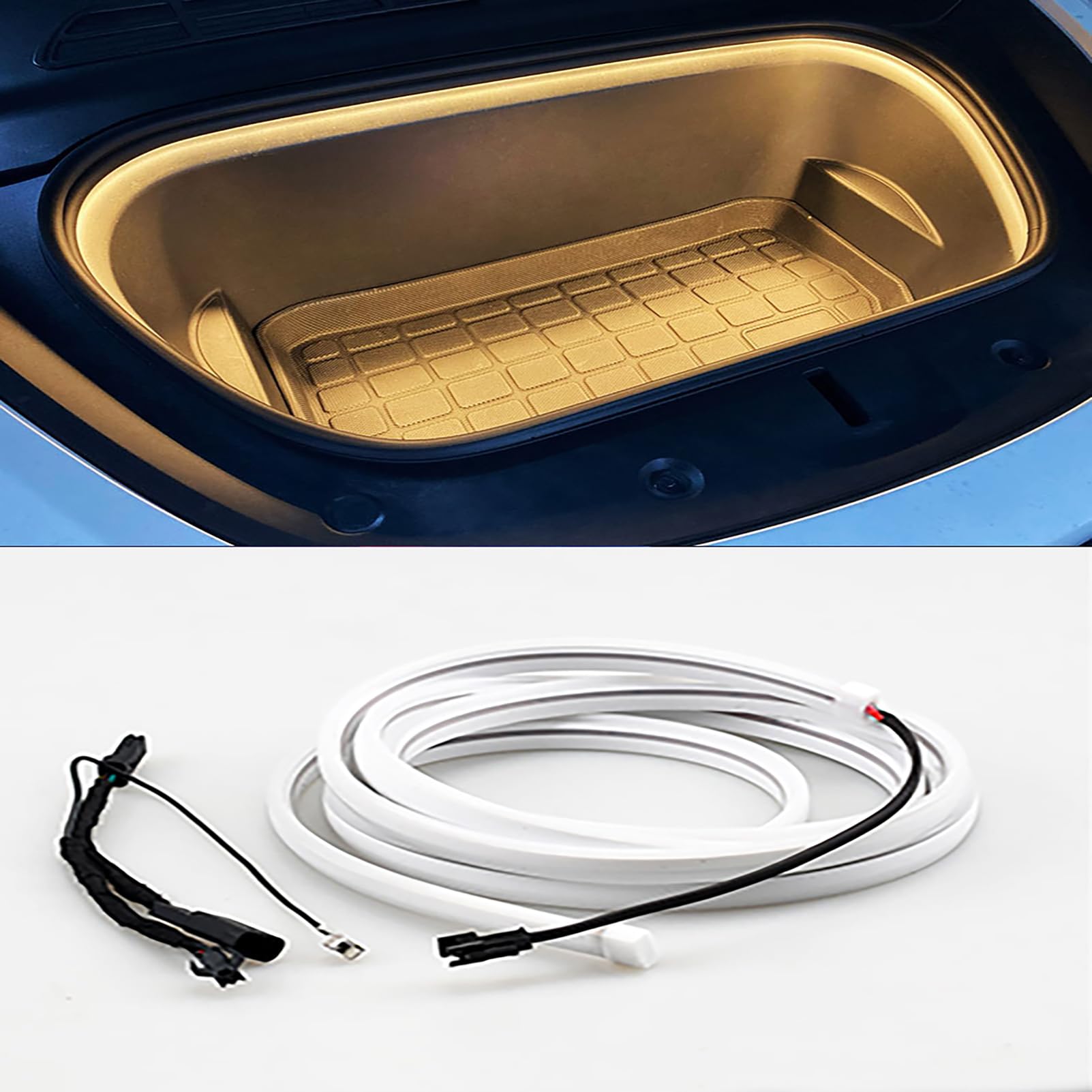 Veuillez sceller l’extrémité coupée avec du ruban adhésif (avec un bouchon en silicone qui s’insère dans l’ouverture de cisaillement)., 2., En raison de l’utilisation d’une mèche LED haute luminosité, le ruban lumineux peut chauffer après une utilisation prolongée, mais cela n’affecte pas son utilisation., Installation :1., Ouvrez le couvercle de l’éclairage du coffre. Bande Lumineuse D’Ambiance Pour Coffre Tesla Model Y - Éclairage Auto, PVC, Capteur Automatique Branchez la fiche du ruban lumineux au connecteur de la voiture d’un côté et à l’éclairage du coffre de l’autre. Il illumine l'intérieur du coffre et tous les recoins. Consommation ultra-faible : extinction automatique après 10 minutes, consommation de 6 W/m, soit environ 0,003 kWh par utilisation., Installation sur secteur. Tesla Model Y Juniper Tlyard Lumiu00e8res D'ambiance LED Pour Coffre De Tesla Model Y - Guirlande Lumineuse Intu00e9rieure Pour Intu00e9rieur De Coffre - Pour Atmosphu00e8re Nu00e9on Tapis Tesla Model Y Juniper 2025 Fixez ensuite l'anneau magnétique au cylindre de mise à la terre d'origine du véhicule. Bande lumineuse LED flexible en silicone, haute technologie et compatible OEM, étanche à l'eau et à la poussière. Installation facile et sans dommage. Remarque : Si la bande lumineuse ne s'allume pas, vérifiez que la fiche est bien insérée et que l'anneau magnétique est bien relié au cylindre de mise à la terre., 2., Détachez la bande adhésive étanche du coffre avant et fixez la bande lumineuse du coffre à la bande adhésive du véhicule. Philips HUE Ambiance blanche et colorée Bande lumineuse à dégradé, Kit Luminosité : 3000 K, lumière jaune chaude bien répartie. Bande LED néon voiture : ambiance élégante - Test et Avis