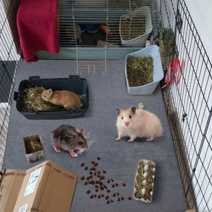 Description du produit Description du Produit : Haute absorption : Tapis pour cage cochon d inde fabriqué à partir d'un tissu chenille à texture rugueuse, ce tapis offre une absorption exceptionnelle tout en étant antidérapant et durable. Les tapis polaire sont la meilleure litière pour votre cavy cage ou pour toute autre cage! Ils sont épais, confortables, absorbants et réutilisables. Découvrez ci-dessous notre gamme de tapis polaires pour cochons d'Inde et lapins, aux couleurs unies ou avec motifs Il offre une surface douce et confortable pour les cochons d'Inde et les lapins, tout en gardant la cage sèche et hygiénique. Secouez les résidus de foin avant le lavage pour un nettoyage rapide et sans effort. Plusieurs tapis peuvent être reliés entre eux pour agrandir la surface et répondre aux besoins de différentes zones d'activité. Tapis Pour Animaux Lavables Tapis De Propreté Lavable Pour Lapin Réutilisable Tapis D'Entraînement Pour Cochon D'Inde Petit Animal Tapis De Literie Pour Lapin Doublures En Polaire Pour Cage Chinchilla Tapis De Recherche Doux pour la peau et respirant : Tapis polaire cochon d inde Fabriqué à partir de fibres de chenille respirantes, il présente une texture douce et non irritante qui ne perd pas ses fibres, offrant ainsi un soin particulier à la peau sensible des rongeurs et garantissant la santé et le confort des animaux de compagnie. Plus écologique que les tapis jetables Combinaison Flexible : La taille standard de 60 × 40 cm tapis lapin lavable s'adapte à la plupart des cages pour petits animaux. Facile à nettoyer : Tapis litiere lapin lavable peut être lavé à la main ou en machine pour un nettoyage en profondeur. Tapis qui remplace la Litière pour Cochon d'Inde et Lapin - Absorbant, Imperméable, Passe en Machine - 140 x 70 cm - Neo Solvo - Gamm vert Spécifications : Nom du produit : tapis rongeur lavable Matériau : Polyester Couleur : Gris clair Dimensions : 60 × 40 cm Le Paquet Comprend : tapis pour cage pour animaux x 1 Mode d'emploi non Facile à Nettoyer:les tapis pour cochon d'Inde facilitent le nettoyage de votre cage et la garde au sec sans avoir à laver toute la cage Réutilisable