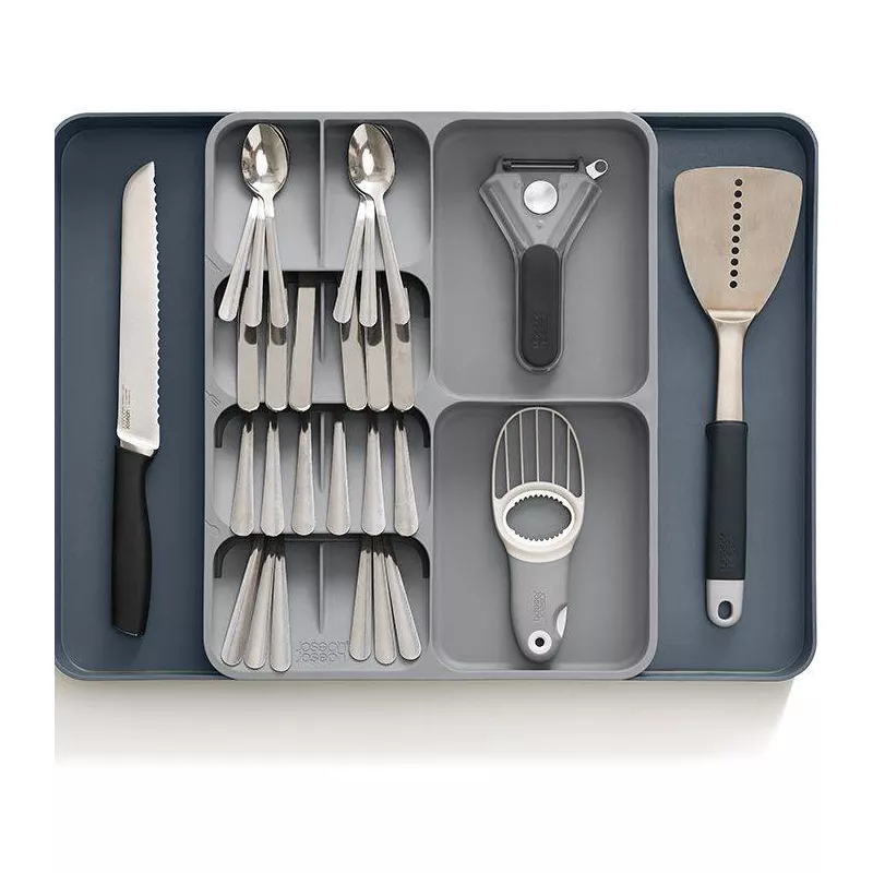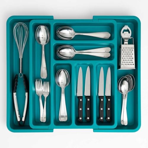 RANGEMENT PRATIQUE: Plusieurs compartiments dédiés pour trier efficacement les cuillères, fourchettes, couteaux et autres ustensiles MATÉRIAU DURABLE: Organisateur de tiroir élégant avec une finition naturelle, parfait pour ranger les couverts et ustensiles de cuisine OPTIMISATION D'ESPACE: Design intelligent qui maximise l'espace disponible dans vos tiroirs de cuisine KeZaara Rangement Couverts Tiroir Cuisine Extensible, Range DIMENSIONS FLEXIBLES: S'adapte à la plupart des tiroirs de cuisine standards grâce à son système extensible modulaire Organisez efficacement vos couverts et accessoires de cuisine avec notre sélection de range-couverts pour tiroir. Conçus pour s’adapter à différents types et tailles de tiroirs, ces organisateurs vous permettent de maintenir vos ustensiles de manière ordonnée et accessible 13 Compartiments Extensible 30 94cm Séparateur De Tiroir - Range-couverts - Pour Ustensiles De Cuisine Couverts Spatules Et Accessoires De Cuisine Extensible Plastique Transparent Range Ustensiles Cuisine Ajustable Simples et pratiques à installer dans vos tiroirs, ils vous permettront de mieux organiser le rangement de vos couverts et autres ustensiles de cuisine. Faites le choix des couleurs et matériaux qui vous conviennent : plastique, acrylique, bois, métal ainsi que des dimensions adaptées à vos tiroirs et usages