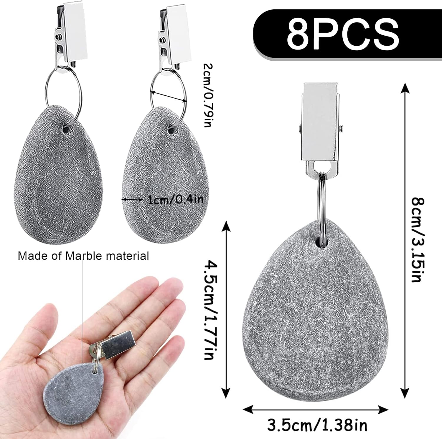 Poids Pour Nappe De Table Exterieur 8 Pcs Clip De Nappe Porteur Nappe Citron Poids De Nappe D'Extu00e9rieur Support De Jupe De Table Poids Nappe Poids De Nappe Marbre Naturel 8 Pièces Poids De Nappe En Pierre Avec Pince En Marbre, Poids Pour Nappe De Table Exterieur,pour Accessoire Nappe Jardin La pince est conçue pour toutes sortes de nappes extérieures, rideaux, rideaux de douche, qu'ils soient intérieurs ou extérieurs. Les poids de nappe sont fabriqués en marbre naturel avec une surface lisse, la partie clip du support de nappe est fabriquée en fer de haute qualité recouvert de nickel, qui résiste à l'humidité et à la rouille, ne se déforme pas facilement et peut être utilisé longtemps. il suffit de l'accrocher au bord de la nappe pour éviter qu'elle ne soit emportée par le vent. 8 pièces poids pour nappe ]: Vous recevrez un total de 8 pièces ensemble de poids de nappe, ce qui est suffisant pour votre utilisation quotidienne ou pour le remplacement 【8 pièces poids pour nappe 】L'ensemble comprend 8 poids de nappe à pince en acier inoxydable 8, suffisants pour votre vie en plein air. Chaque poids est fabriqué en marbre de haute qualité et est équipé d'un clip pratique qui fixe la nappe en toute sécurité. Évitez les pendentifs nappe qui s'envolent lors de vos fêtes de jardin avec notre ensemble de poids en marbre de nappe ce qui est suffisant pour votre utilisation quotidienne ou pour le remplacement. Chaque nappe pèse 35g.