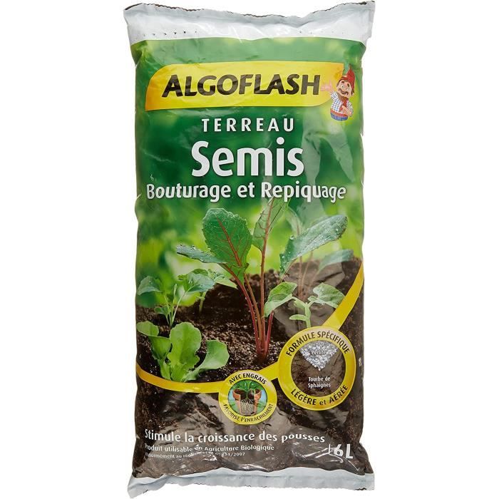 Il stimule la croissance des racines sans risques de brûlures. Le repiquage des plants de légumes (tomates, salades, poireaux., ., ., ) et des fleurs précédemment semées. *Conformément à la règlementation européenne en vigueur. Utilisable en Agriculture Biologique* Formule spécifique, légère et aérée pour stimuler la croissance Terreau Potager Fleurs Semis ALGOFLASH NATURASOL Poudre Pour Bouturage & Repiquage, Utilisable Toute Terreau Qualité Tourbe Perlite Engrais Ce sac de terreau est constitué d’au moins 60 % de plastique recyclé. Participe au bon enracinement des jeunes pousses Elles garantissent la mise à disposition des nutriments et de l’eau à la plante. Avertissement De Sûreté Éviter l'inhalation des poussières. Techniques de bouturage Le bouturage de tiges (géraniums, romarin, rosiers, thuyas, saint-paulias, laurier, hortensias, ficus), de feuilles (paulias, bégonias), de racines, de bulbes et rhizomes (lis). Avec engrais pour soutenir la croissance des plantules après germination. En réutilisant du plastique collecté, l’empreinte CO2 est diminuée par rapport à un sac de terreau classique. Composition : Avec tourbes de sphaignes, elles retiennent l’eau et fixent les éléments nutritifs. TERREAU SEMIS BOUTURAGE ET REPIQUAGE - 40L - Jardinerie BONCAP ALGOFLASH TERREAU GÉRANIUM et - 3167770208092 L'engagement ALGOFLASH® : La tourbe certifiée de ce terreau a été produite de manière responsable, conformément à des critères stricts de sélection des tourbières, d’extraction et de postutilisation.