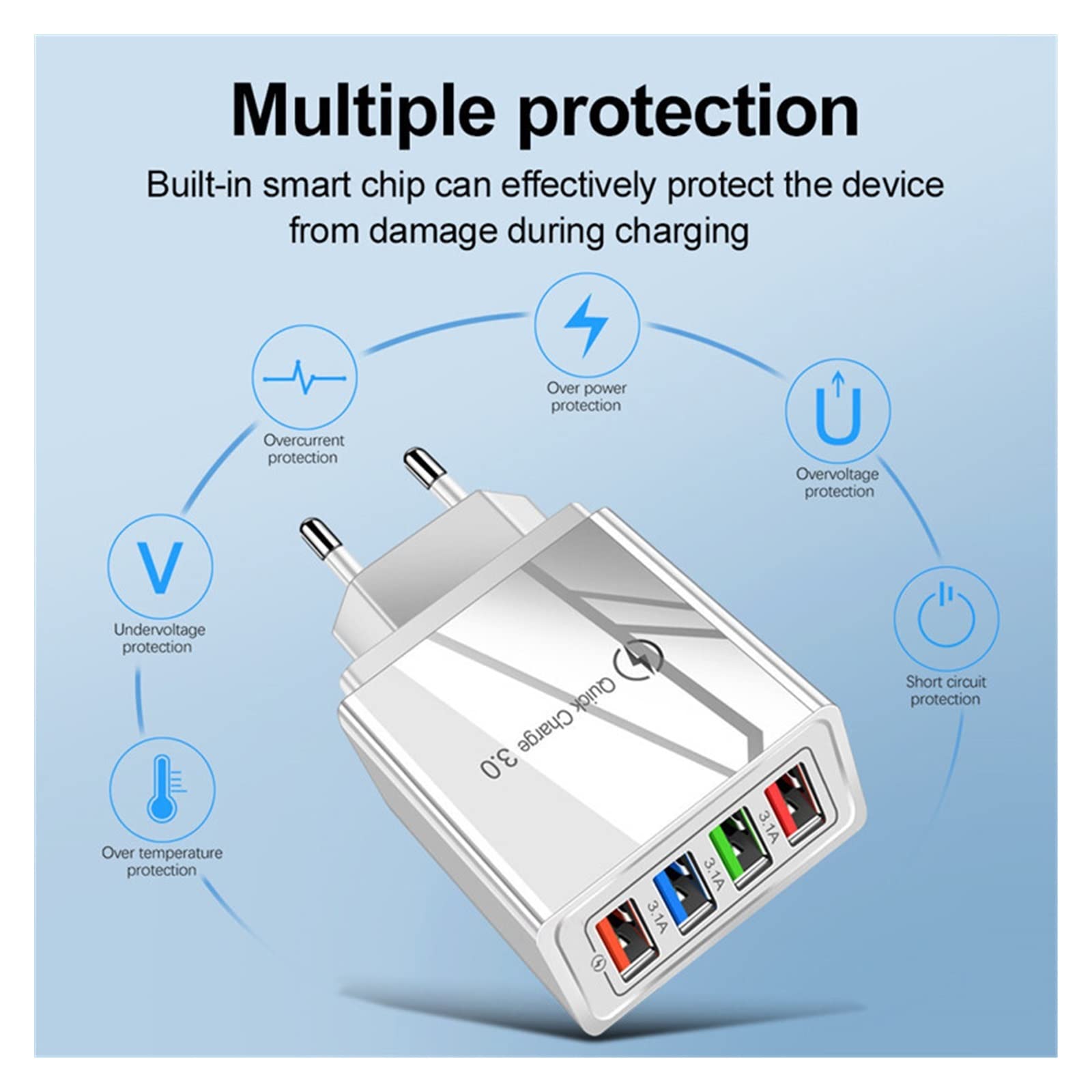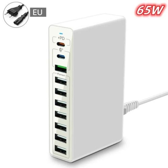 Reconnaissance intelligente : Grâce à sa détection automatique des protocoles, ce chargeur USB C adapte la puissance de charge à chaque appareil connecté, servant de hub de charge quotidien fiable pour smartphones, tablettes et autres gadgets compatibles Assurance de charge renforcée : Équipé d'un contrôle de température et d'une protection contre les surtensions, ce chargeur offre une charge sûre pour plusieurs appareils tout en évitant les courts-circuits, pour une solution durable priorisant la sécurité. Technologie intelligente : Le système de charge rapide QC3., 0 avec protocole PD Type-C ajuste automatiquement la puissance de sortie jusqu'à 18W pour une recharge optimale sans surchauffe. Hub Charge Smartphones Tablettes Chargeur Voyage 3-Port USB Mural Maison Pour Téléphone EU Plug Rose Pour Smartphone Tablette Achetez Chargeur Rapide,Bloc Multiport - Accessoires Téléphone pour Tablette Ordinateur Maison Bureau Voyage : Chargeurs et adaptateurs Multiport Charging] : un bloc d'alimentation avec double port USB-C et deux ports USB-A. Permet aux utilisateurs de charger le téléphone, la tablette et les écouteurs en même temps pour minimiser le temps d'attente. C'est également un grand gain de place au lieu d'occuper 4 prises murales Chargeur Multiple Ports 286w Chargeur GaN 286W 8 Ports - 6 USB-C + 2 USB-A - PD 100W - Compatible MacBook/smartphones Charging Station