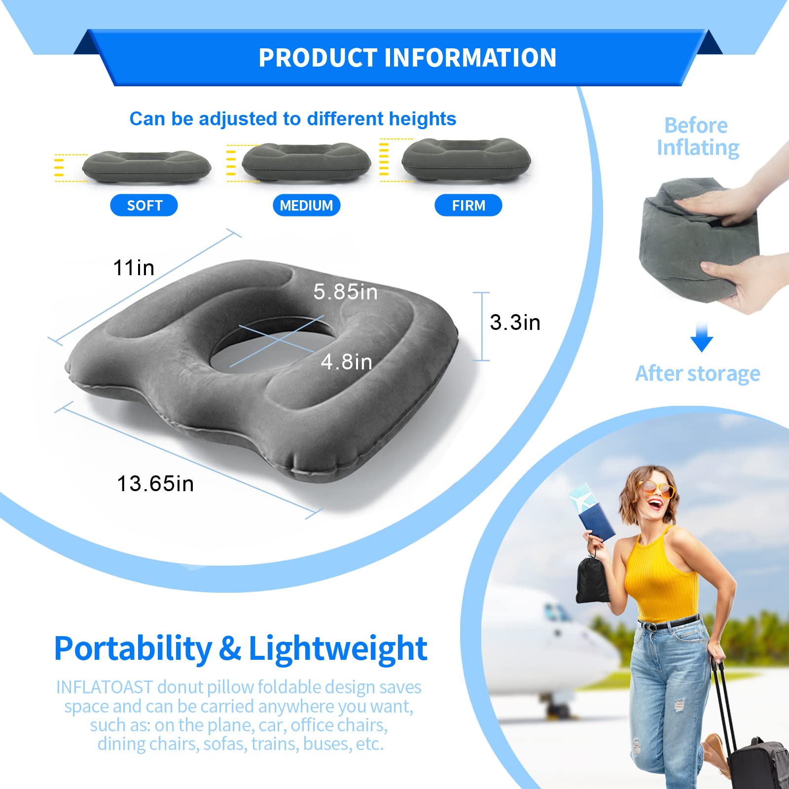 Ajustez la fermeté en gonflant ou en dégonflant pour obtenir l'effet souhaité. Anneau Siège Ergonomique Velours Gris HMCEY Bouée Coccyx Gonflable,Donut Coccyx Coussin Hémorroïdes Coussin Anti-douleur Siège - Doté d'un design ergonomique circulaire, ce coussin gonflable sacré soutient efficacement le sacrum et la région pelvienne, soulageant la pression et offrant une assise confortable. Lorsqu'il est dégonflé, il mesure 40 cm de diamètre ; lorsqu'il est gonflé, 37 cm. La chambre à air en forme d'anneau répartit uniformément le poids du corps, soulageant la pression sur le bas du dos et les hanches pour un confort accru. Coussin Coccyx Orthopédique - Bouée Médicale Ergonomique en Gel et... Matériaux haut de gamme : le coussin coccyx est recouvert d'un tissu velours de haute qualité et doté d'une couche intérieure en PVC hautement élastique. Lorsqu'il n'est pas utilisé, il peut être facilement dégonflé et plié, devenant ainsi compact et léger pour un rangement peu encombrant. Il peut être transporté partout, ce qui le rend pratique pour les voyages. Il offre un toucher doux et confortable, résiste aux dommages, aux déchirures et à l'abrasion, et est exceptionnellement durable pour une utilisation à long terme. Il convient aux fauteuils roulants, aux chaises de bureau, aux sièges de voiture et à d'autres types de sièges, vous garantissant un confort où que vous soyez. Portable et léger : le coussin circulaire est gonflable pour faciliter son rangement. Coussin Bouée Sabeatex - À mémoire de forme, soulage les douleurs des