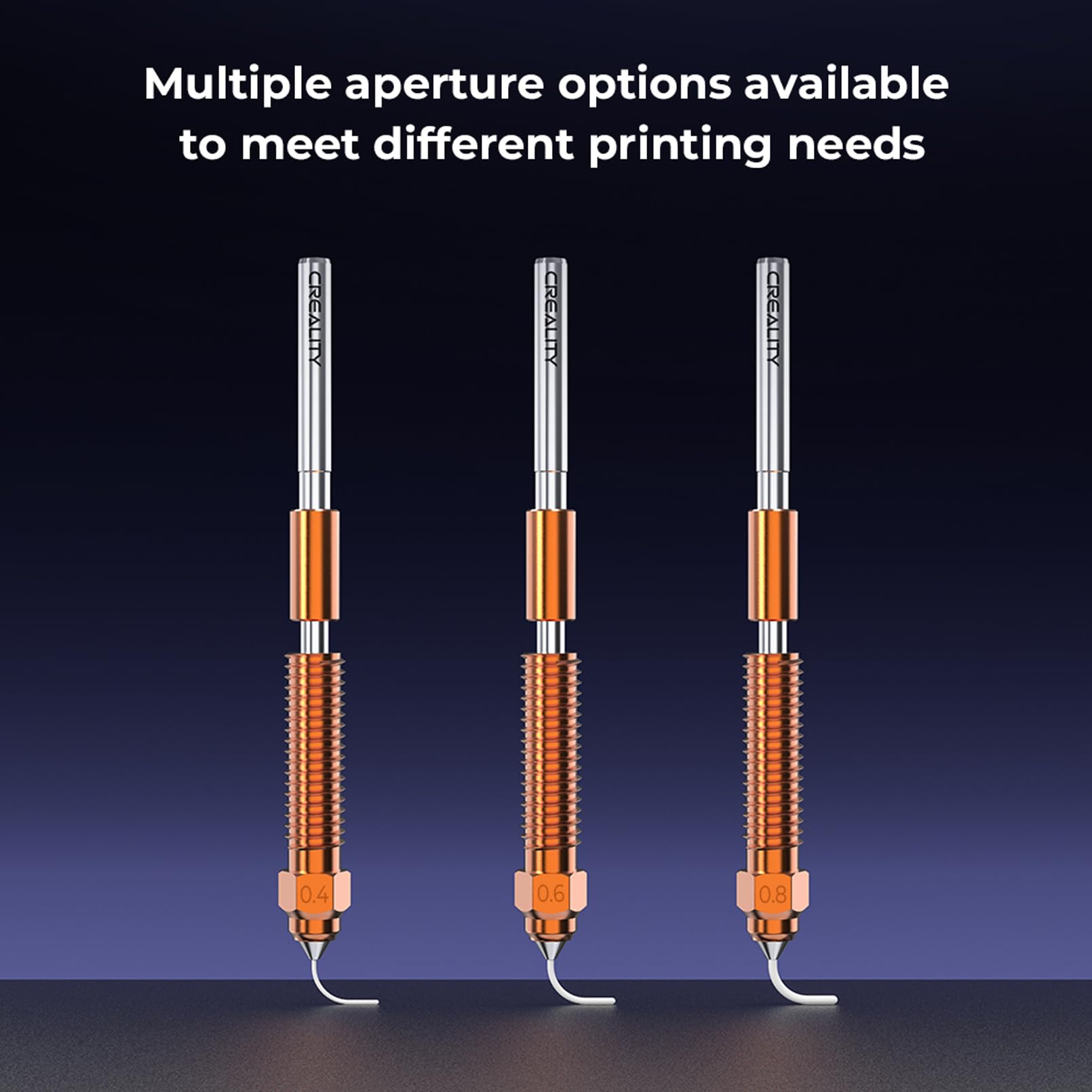 La buse Unicorn à changement rapide de Creality est une construction Quick-swap tri-métallique composée d'une buse et d'un Heatbreak pour un montage et un démontage rapides Débit élevé, prise en charge de l'impression haute vitesse : chambre à buse élargie, taux de flux maximal jusqu'à 30 mm³/s, et prise en charge de l'impression à haute vitesse à 600 mm/s. 3d Drucker Zubehör Creality Unicorn Quick-Swap Nozzle Kit For K1C, Ender 3 V3, 3D Printer High Speed Tri-Metal Steel-Tipped Copper Nozzle And Titanium Alloy Heatbreak Quick-Swap Nozzle Kit For K1C, Ender 3 Impression à haut débit., Matériau amélioré. Matériau amélioré, adapté à l'impression d'une variété de filaments : la rupture thermique est fabriquée en alliage de titane, ce qui réduit la conduction de la chaleur. La buse est composée d'alliage de cuivre et d'acier trempé, prend en charge l'impression de divers filaments tels que PLA, ABS, PETG, TPU, PC, PLA-CF, PA-CF, PET-CF. Travailler avec K1C, Ender-3 V3, Ender-3 V3 Plus, K1 Max & K1 (version avec buse intégrée Shenzhen Creality 3D Technology Co., Ltd Unicorn K2P Quick-Swap Nozzle Nozzle Kit for K2 Plus/Creality Modèles compatibles : ce kit de buse à changement rapide est compatible avec les imprimantes 3D Creality Ender 3 V3, K1C et contient 2 buses de 0,4 mm, 1 buse de 0,6 mm et 1 buse de 0,8 mm. (ouverture de buse de 0,4 mm, données de test de température d'impression à 240 °C) Plusieurs options de diaphragme Matériau : alliage de titane + cuivre + acier trempé Diamètre de la buse : 0,4 mm, 0,6 mm, 0,8 mm.