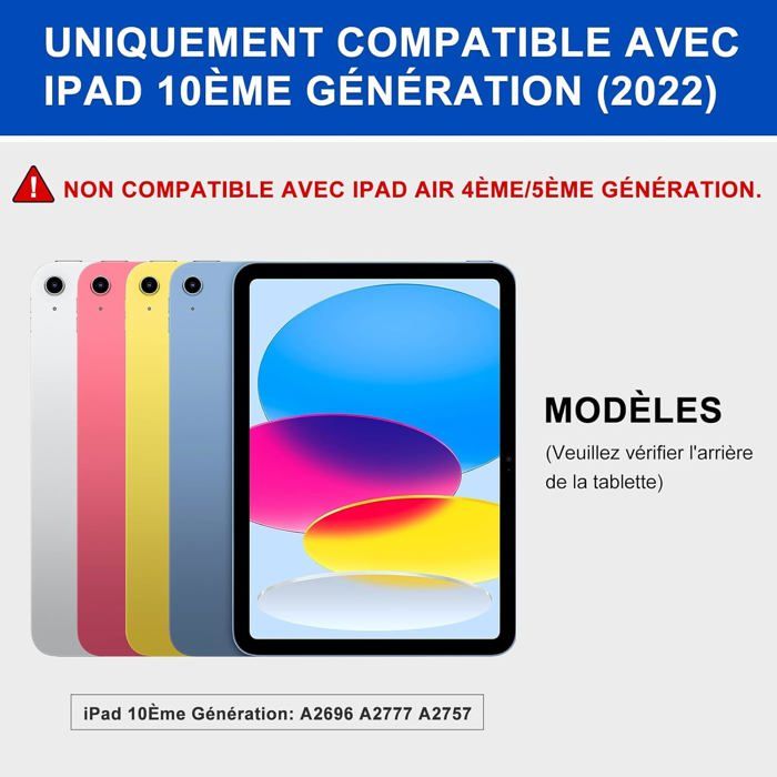 Coque Clavier Ipad Clavier IPad 9ème Génération 360° Flip Coque Clavier Sans Fil Bluetoot Clavier Trackpad Ipad 9ème Génération (*Remarque : le clavier entrera en mode veille s'il ne fonctionne pas pendant 10 minutes, et il se déconnectera de votre pour iPad. Clavier Pour Ipad 9Ème Génération - Clavier Pour Ipad 8Ème Génération... Acheter Clavier iPad 9ème Génération 360° Flip Coque Clavier sans Fil Bluetoot... pas cher dans le rayon Claviers pour tablettes sur : les meilleurs sites classés par prix, stock, et frais de livraison. Achetez ce produit en comparant les prix. Comparateur de prix en France Raccourcis du système d'exploitation : le coque clavier ipad 9eme generation 10., 2 dispose d'une rangée de touches de raccourci sur la rangée supérieure, vous permettant de régler rapidement la luminosité/le volume de votre tablette, l'écran de verrouillage et d'autres opérations, ce qui le rend plus pratique à utiliser., le tampon. Il se réveillera et se connectera à nouveau à votre lorsque vous appuyez sur n'importe quelle touche Clavier Ipad 9Ème Génération, Coque Con Français Azerty Clavier Ipad 10 【Clavier rétroéclairé 7 Couleurs】Le iPad 9/ 8/ 7 ème Génération coque clavier dispose de 7 couleurs de rétroéclairage et de 2 modes d'éclairage RVB, vous permettant de taper avec précision et confort même dans l'obscurité ou dans une faible luminosité, apportant un plaisir différent à votre utilisation quotidienne Pourquoi choisir l'étui KBCASE 360° rotatif clavier pour iPad 9e génération? Trackpad multi-touch : le clavier bluetooth pour iPad 9ème génération dispose d'un pavé multi-touch, vous permettant de parcourir facilement des sites Web et de lire du texte sans souris, ce qui rend votre Pad aussi pratique qu'un ordinateur portable. Rechargeable Clavier Sans Fil Bluetooth :le coque pour iPad 9e génération est livré avec une batterie intégrée de grande capacité qui peut être complètement chargée en 2 à 3 heures et peut être utilisée pendant plus de 100 heures. 7 rétroéclairage coloré : le coque clavier ipad 9/8/ 7eme generation dispose de 7 types de rétroéclairage de protection des yeux, qui peuvent ajuster la luminosité, la couleur et la fréquence du rétroéclairage selon vos préférences, vous permettant de taper rapidement et avec précision dans des environnements sombres. 【Clavier Sans Fil Bluetooth avec Multi-Touch Trackpad】 Le coque clavier pour iPad 9ème Génération adopte la technologie Bluetooth améliorée, vous offrant une transmission et une connexion plus stables ; trackpad multi-touch intégré, facile à contrôler, améliorant considérablement votre efficacité de travail 【Coque clavier pour iPad 10., 2 】 La KBCASE Clavier est uniquement compatible avec iPad 10., 2 9th Gen 2021 (Modèle: A2602 /A2603 / A2604 / A2605), iPad 10., 2 8th Gen 2020 (Modèle: A2430 / A2270/ A2428/ A2429), iPad 7e génération 2019 (Modèle: A2197 / A2198 /A2199 / A2200) Veuillez vérifier le numéro de modèle commençant par « A » au dos de votre pour iPad avant d'acheter Rotatif à 360° : compatible avec clavier ipad 9/8/ 7eme generation, prend en charge une rotation à 360° et un pliage à 180° avec des charnières robustes, vous permettant d'effectuer confortablement n'importe quelle tâche sur votre Pad, qu'il s'agisse de partager des écrans avec des amis ou de regarder des vidéos.