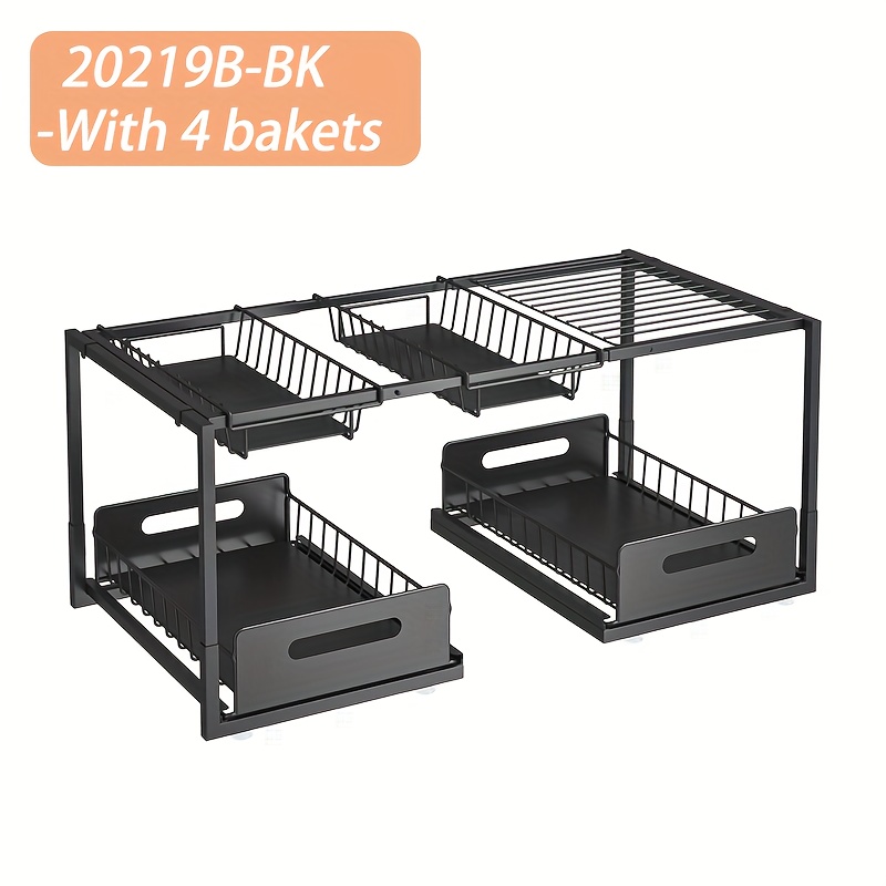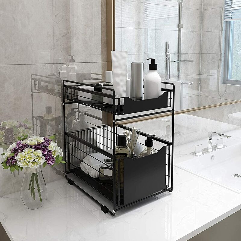 Gain de Place & Rangement Optimal: Notre rangement sous evier optimise l'espace disponible, sa conception à double couche vous permet de ranger plus d'articles dans le même espace. Lot de 2 Rangement sous Évier, Organisateur sous Evier Cuisine avec 8 Crochet et 2 gobelet Suspendu, Etagere sous Evier pour Buanderie, Meuble, Salle de Bain (Noir Le rangement peut contenir du liquide vaisselle, du shampoing, du gel douche, des cosmétiques, etc. Le tiroir coulissant inférieur vous permet de ranger et de récupérer vos objets de manière plus flexible et plus pratique dans un espace limité. Le panier est doté d'une conception creuse, ce qui évite l'accumulation d'eau et empêche la formation de moisissures Organisateur Cuisine étagère Vihoom Lot De 2 Rangement Sous Évier, Organisateur Sous Evier Rangement Cuisine Organisateur Il permet de ranger les bouteilles et les pots de manière plus ordonnée sous l'évier. 【Facile à Assembler et Nettoyer】 L'organiseur de salle de bain peut être facilement assemblé en moins d'une minute sans aucun outil. Pour nettoyer l'étagère, il suffit d'essuyer la surface avec un chiffon humide. 【Optimisez l'espace Vertical】 Ne vous débattez plus avec des placards encombrés sous l'évier, dans la salle de bain et dans la cuisine. Rangement Evier Tiroir Sous Evier Organisateur D'étagère 【Construction Robuste & Stable】 Le organisateur sous evier cuisine est fabriqué à partir de matériaux plastiques ABS de haute qualité, et les 4 tubes de support sont recouverts d'une peinture pulvérisée et d'un corps en fer forgé épaissi, ce qui empêche la rouille même dans les zones humides et inondées, offre une plus grande capacité de charge et ne se déforme pas facilement Organisateur de Placard sous l'évier de Rangement de Cuisine...