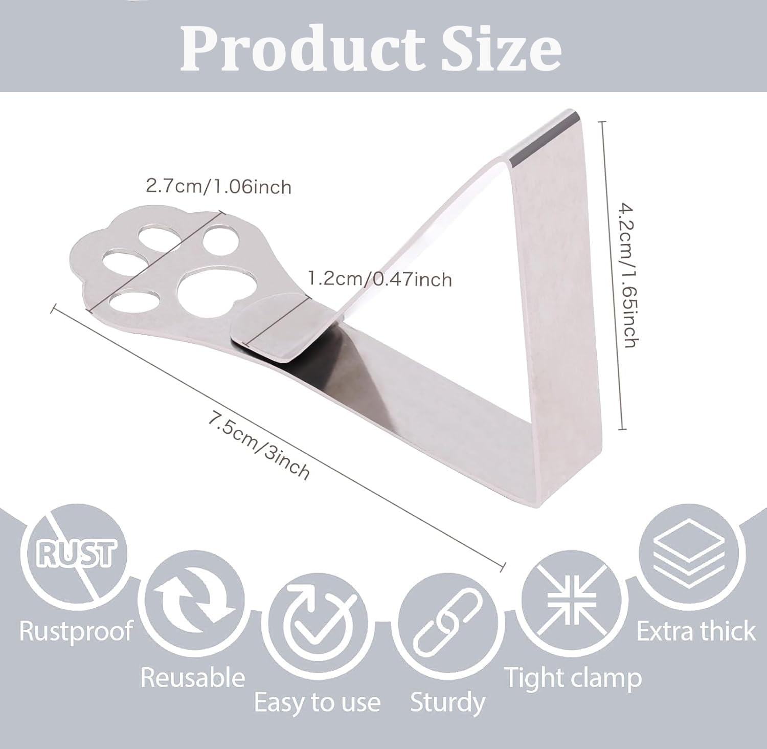 Le design innovant en forme de griffe de chat offre une adhérence supplémentaire et empêche efficacement la nappe de glisser ou de se soulever, même en cas de vent fort ou d'activités de plein air. Les pinces empêchent efficacement la couverture de glisser ou de se soulever, même en cas de vent ou de mouvement., 2., Grâce à leur envergure flexible, ils s'adaptent à différentes tailles et formes de table, ce qui en fait un accessoire polyvalent pour différentes occasions, que ce soit dans le jardin, au camping, au restaurant ou lors de réunions de famille., 3., L'application est très simple : faites glisser la pince sur le bord de la table et la nappe est déjà fixée. Les pinces peuvent également être retirées facilement sans laisser de traces ou de dommages. Design élégant avec fonctionnalité pratique : le design unique en forme de griffes de chat donne non seulement aux pinces un aspect charmant, mais améliore également la prise en main. Il suffit de glisser la pince sur le bord de la table et la nappe est maintenue. Accessoire Repas Extérieur Lot De 10 Supports De Nappe Pour Dessus De Table épais, Griffes De F 950668 Accessoire Table Jardin Camping Un accessoire indispensable pour tous ceux qui veulent sécuriser leurs nappes de manière durable et élégante. Cette application conviviale permet d'économiser du temps et des efforts, en particulier lors de l'installation et du démontage fréquents des tables. Dimensions : longueur 13 cm, largeur 12,5 cm, hauteur 2,5 cm. Facile à utiliser et rapide à installer : les supports de nappe sont faciles à installer et à enlever sans endommager la surface de la table. Pinces À Nappe Pour Table À Manger En Plein Air, Pique-Nique, Pinces De Table En Acier... Ce lot se compose de 8 pinces en acier inoxydable de qualité supérieure, spécialement conçues pour une utilisation sur des plateaux de table épais. Avec leur design élégant et leur fonctionnalité pratique, ces supports de nappe ne sont pas seulement un outil utile, mais aussi un ajout décoratif à votre décoration de table. Que ce soit pour les repas de famille, les restaurants ou les événements en plein air, ces pinces s'adaptent à vos besoins et garantissent toujours un maintien ferme de la nappe. Matériau : acier inoxydable., Poids : 88 g. Maintien sûr de la nappe : ces pinces à nappe en acier inoxydable sont conçues pour maintenir la nappe en place en toute sécurité, elle ne glisse pas. Convient pour les tables épaisses : avec une table de travail maximale de 3 cm, ces pinces sont adaptées pour les tables avec un bord plus épais Lot de 8 supports de poteau réglables noirs - Convient pour pavillon Ils résistent aux éléments et conservent leur fonctionnalité et leur aspect attrayant même après une utilisation prolongée en extérieur.