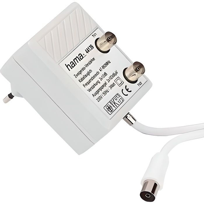 Également pour amplifier la connexion radio et TNT., Gain 4x10 Db. Puissance d’amplification réglable pour une qualité image/son optimale. Répartit le signal d'antenne entre quatre connexions tout en amplifiant le signal. Amplificateur Répartiteur Hama (4 Voies Pour Systèmes BK Et Réseaux Terrestres, 4x10 DB Booster Signal HDTV Hama Répartiteur 4 Voies Symétriques-11, 5 Db-Carton De 50 P Raccord de tuyau d'arrosage 4 voies avec interrupteurs, répartiteur en plastique pour systèmes d... Amplificateur d'antenne HAMA pour deux appareils - Connecteur Coax