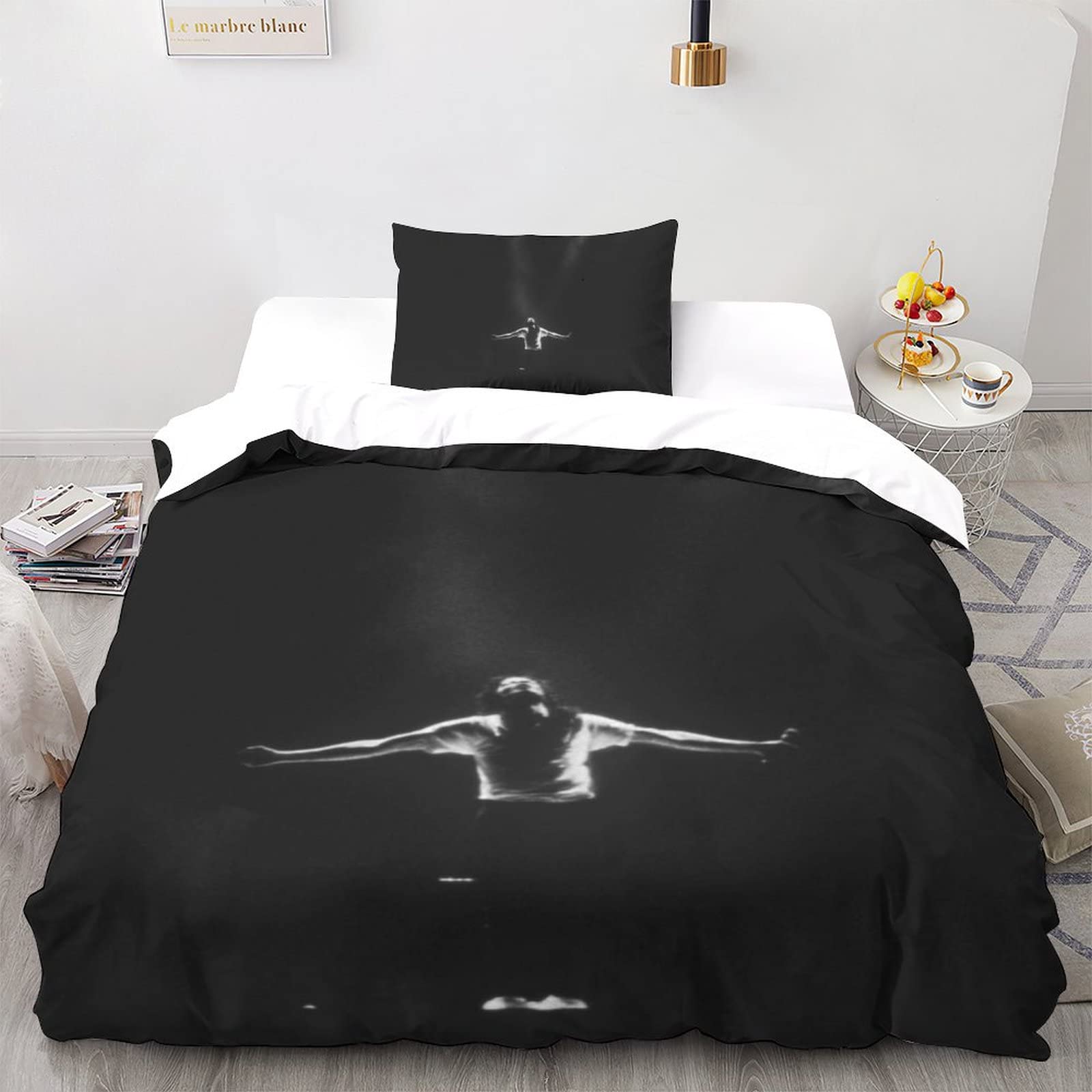 Housse De Couette Microfibre Motif 3D Nylin Housse De Couette Michael Jackson Parure De Lit Rock Music Legende Mj Imprimee Housse De Couette Parure De Lit Michael Jackson Contenu de la livraison et dimensions (la housse de couette n'est pas incluse) : 1 housse de couette de 135 x 200 cm et 1 taies d'oreiller de 48 x 75 cm. housse de couette : Chambre Super roi (260x220cm), 2 taies d'oreiller : 48cmx75cm Ce produit est plus doux,Il peut vous donner l'expérience de sommeil la plus douce et confortable. Parure de lit :1 housse de couette : Simple (135x200 cm), 1 taie d'oreiller : 48cmx75cm. 【Conception Pratique】La housse de couette est dotée d'une fermeture éclair cachée pour faciliter l'insertion et le retrait de la couette. 【Technologie d'impression et de teinture 3D】 La nouvelle technologie d'impression numérique inoffensive vous offre l'ensemble de literie 3D coloré idéal, adaptés à toutes les saisons. housse de couette est munie d'attaches aux quatre coins pour la maintenir en place, même si votre enfant se roule et joue dans son lit. Offrez à votre enfant une nuit de sommeil parfaitement confortable. L'un des moyens les plus simples et les plus pratiques de mettre à jour rapidement le style de votre chambre à coucher est de changer la literie. Housse de coussin Michael Jackson Informations : Motif : motif Michael Jackson 3D., Matière : microfibre. Housses De Couette Vintage | Boutique New York Étiqueté Michael Jackson 1 housse de couette : Double (200x200 cm), 2 taies d'oreiller : 48cmx75cm. Entretien : les housses de couette sont équipées de fermetures éclair cachées faciles à fermer qui facilitent l'enfilage et le déshabillage., Lavable en machine. 【Matériaux Premium】: Cette housse de couette imprimée Michael Jackson est tissée en microfibre 100% polyester - douce, résistante et hypoallergénique. Les mesures étant prises à la main, les tailles indiquées peuvent varier de 1 à 3 cm. 1 housse de couette 260 x 220 cm et 2 taies d'oreiller 48 x 75 cm. 1 housse de couette : King (220x240 cm), 2 taies d'oreiller : 48cmx75cm. Housse De Couette Grise Michael Jordan | Housse De Rêve 1 housse de couette 220 x 240 cm et 2 taies d'oreiller 48 x 75 cm. 1 housse de couette : Chambre simple (140x200cm), 2 taies d'oreiller : 48cmx75cm.