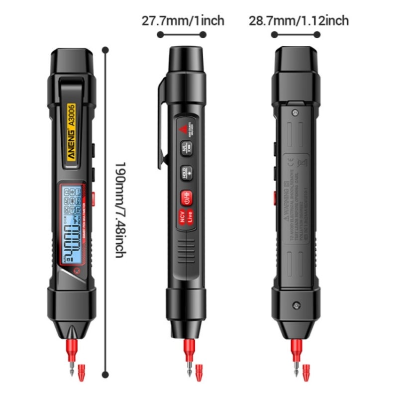 Stylo Testeur Électrique - Détecteur Intelligent de Circuits Électriques | 2-en-1 à Pile Haute Précision avec Tournevis pour Électriciens, Industrie, Maison et Automobile : : DIY & ToolsAbout this item Double détection intelligente Double détection intelligente : Technologie avancée combinant diagnostic de circuit et double capteur pour des résultats fiables sur divers systèmes électriques. Stylo Testeur De Tension Testeurs De Crayons électriques - Solutions Fiables Et Durables Testeur électrique Sans Contact Avec un écran numérique, le Voltage Tester Pen garantit des lectures précises grâce à une technologie sans , privilégiant la sécurité de l'utilisateur. Large spectre de détection : Fonctionnement stable sur 30-1000V AC grâce au mode professionnel 11-450V optimisé pour l'adaptation instantanée aux systèmes électriques européens standards 50-60Hz Économie d'énergie : Doté d'une fonction d'arrêt automatique et d'extinction après 3 minutes d'inactivité, ce testeur de tension réduit la consommation énergétique tout en prolongeant sa durée de vie grâce à sa conception écologique pour une utilisation fiable EN STOCK : Stylo Détecteur de Tension Réglable 12-1000V pour Électricien Professionnel, fifth-cy-1907 pas cher. Livraison rapide partout en France Stylo électrique sans contact avec indicateur LED, testeur Cet outil multifonctionnel est pratique pour tester les batteries de voitures et les circuits électriques avec une précision constante. Mesures stables dans toutes situations. Sa forme compacte et portable convient aux électriciens travaillant dans des environnements automobiles, domestiques ou industriels.