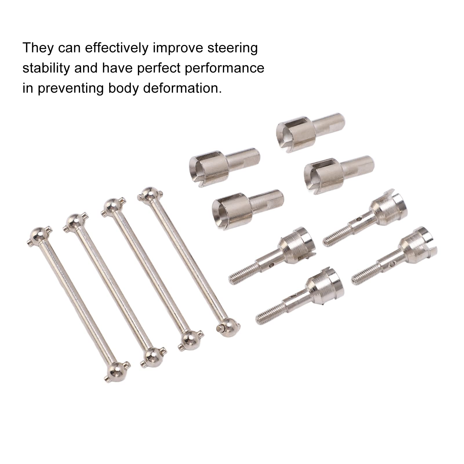 Fabriqué en métal trempé haute résistance, robuste et durable Convient pour : HBX 1/18 18859 18858 18868 RC Voiture Camion Usiné CNC pour une précision maximale, mise à niveau facile des anciennes pièces ESTINK RC Car CVD Set Ensemble CVD avant arrière de voiture RC avec Contenu de l'emballage : 2 arbres d'entraînement avant (avant) et 2 arbres d'entraînement arrière (arrière) et 4 arbres d'entraînement avant et arrière (avant et arrière) Expérience de conduite améliorée : ces arbres d'entraînement avant et arrière RC offrent une transmission de puissance précise et stable, augmentant la dynamique de conduite de votre voiture télécommandée Arbres Cvd Avant Arrière Rc Lot De 4 Arbres De Transmission CVD Avant Et Arrière Pour Voiture Telecommandee 144001 Et 124018~p140134202 Arbres Entraînement CVD Modèle applicable : excellent accessoire pour mettre à niveau votre voiture télécommandée, l'ensemble d'arbres de transmission CVD en aluminium est adapté pour Traxxas Slash 4X4, pour Hqtoys 727 1/10 RC Car