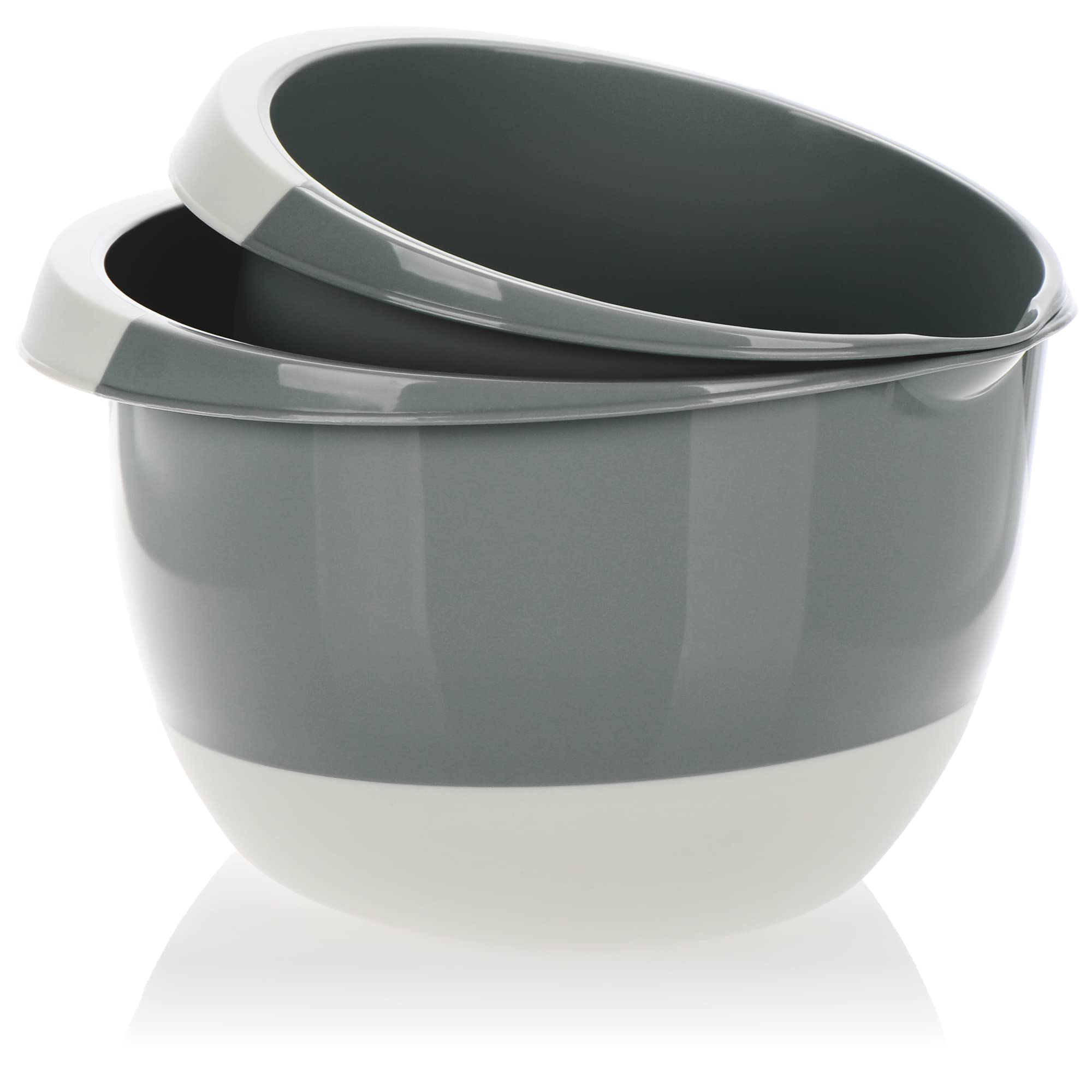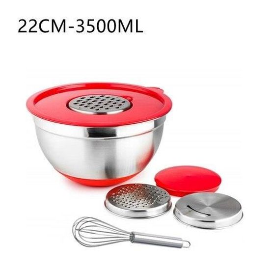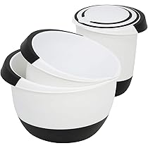 Bols Bec Verseur Empilables COM-FOUR® 2x S Mélangeurs 3,5 Et 2 Litres Avec Fond Bouchon, Bec Bols Mélangeurs Cuisine 20 cm x 13 cm (intérieur ØxH), capacité : 3,5 l Les bols s'emboîtent parfaitement pour être rangés de manière compacte et facile à ranger. Le design et les tons blancs et gris en font un complément parfait à toute cuisine moderne Ce set comprend deux tailles pratiques : un petit bol de 2 litres et un grand bol de 3,5 litres, idéaux pour toutes vos préparations culinaires. Leur design en noir et blanc apporte une touche moderne à votre cuisine D'autres combinaisons de couleurs peuvent parfois se produire. CONTENU DE LA LIVRAISON : 2x bol mélangeur (1x par taille) // Matériau : plastique, caoutchouc // Volume : 3,5 litres et 2 litres // Couleur d'accent : blanc, couleur de base : gris clair, gris foncé, menthe (la sélection varie et dépend en stock) ToCi Lot de 3 bols mélangeurs avec bec verseur - En plastique robuste PROPRIÉTÉS : Dimensions du petit bol : env. Ustensiles de cuisson : Ensemble de 2 bols mélangeurs avec base de bouchon, bec verseur, poignée antidérapante et empilable. 17 cm x 11,5 cm (Ø intérieur x H), contenance : 2 litres Dimensions du grand bol : env. Nous vous demandons de comprendre que ce n'est malheureusement pas toujours possible ! Bon à savoir: Nous nous efforçons toujours de fournir l'article avec la sélection de couleurs indiquée. SUPPORT SÉCURISɠ: Grâce au revêtement antidérapant sur le fond, le bol reste là où il doit être lors de la préparation de gâteaux, salades ou cupcakes, etc., ! ASSISTANT DE CUISSON PRATIQUE : Mélangez les ingrédients de cuisson, remuez la pâte, disposez la salade, conservez les aliments - tout cela est possible avec les bols ! Caractéristiques de l'objet: Dimensions du petit bol : env.