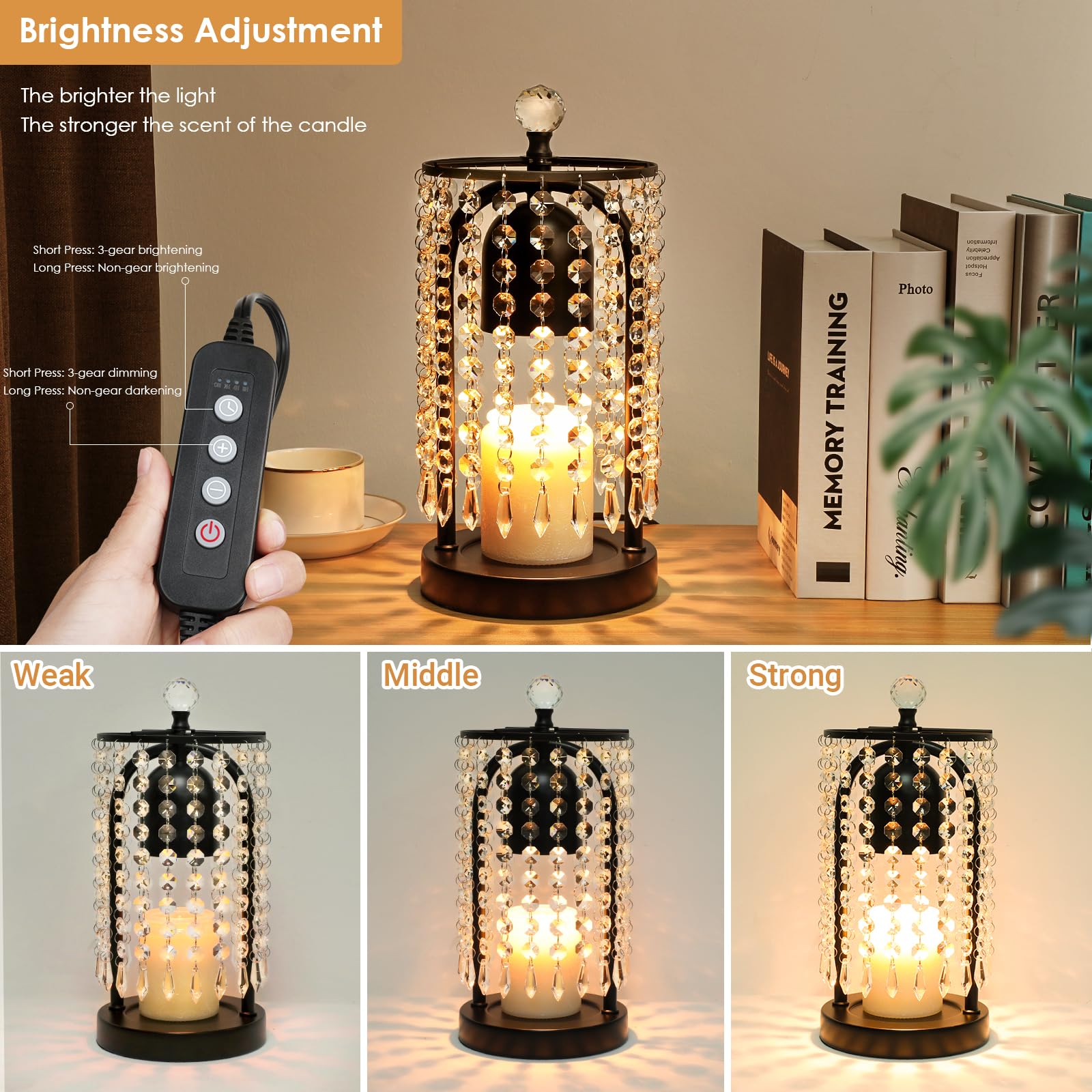 Lampe Chauffe Bougie Imenlox Lampe Chauffe-bougies, Avec Minuterie Et Variateur, Hauteur Réglable, Cadeau D'anniversaire Pour Femme, Maman, Chauffe-cire Pour Bougies Parfumées En Pot, Décoration D'intérieur Egloo Chauffage Bougie Cadeau parfait pour les fans de bougies, élégante lampe chauffe-bougie sans bougies incluses Avec fonction de minuterie : cette lampe chauffe-bougie dispose d'une minuterie de 2, 4 et 8 heures. Hauteur de la bougie : 70 mm - 165 mm , Contenu : 1 lampe chauffe-bougies. La hauteur est réglable et s'adapte aux bougies en verre d'une hauteur allant jusqu'à 16,5 cm. Idéal comme cadeau pour les amateurs de bougies parfumées. Grâce à sa base en bois stable avec coussinet antidérapant, la lampe chauffe-bougie reste toujours stable. Réglable en hauteur et flexible : la lampe chauffe-bougie convient à différentes tailles de bougies. Chauffe-bougie électrique avec minuterie de 2, 4, 8 heures pour une utilisation sûre. seenlast Lape Chauffe-Bougie, Lape Parfuée avec inuterie et L'ampoule halogène GU10 fait fondre les bougies rapidement et uniformément, sans flamme nue. Chauffe-bougie électrique table fusion artisanat interrupteur minuterie... Idéal pour une maison sûre sans risque d'incendie. Design réglable en hauteur pour bougies de 70 à 165 mm, convient à toutes les tailles standard. La lampe chauffe-bougie électrique offre une sécurité relaxante - Particulièrement pratique dans la chambre ou le bureau. Diamètre de l'abat-jour : 110 mm. Interrupteur : fonction de gradation avec 4 niveaux et 3 modes de minuterie (2h, 4h, 8h). Profitez d'un parfum naturel grâce à cette lampe à parfum électrique en quelques minutes. Facile et sûr à utiliser, ce chauffe-bougie électrique est parfait pour une chambre ou un bureau. Hauteur réglable pour une polyvalence optimale : Ce chauffe-bougie s'adapte à des bougies de différentes tailles Source de lumière : ampoule halogène GU10 La lampe chauffe-bougie assure deux fois plus de durée de parfum.