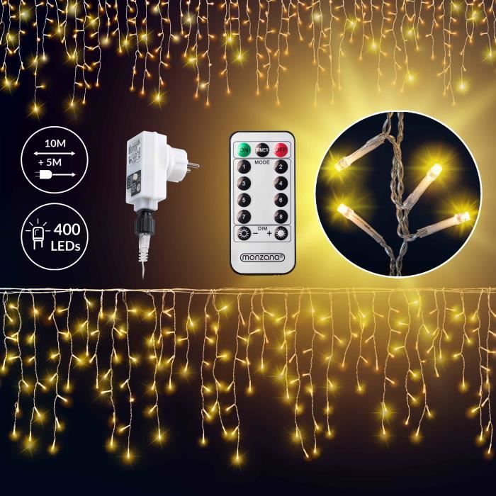 【8 Modes】basculez entre 8 effets lumineux dynamiques (combinaison, vagues, séquentiel, lueur lente, poursuite/clignotement, fondu lent, scintillement/clignotement et fixe) via le bouton USB ou la télécommande. 4 Niveaux de Luminosité 8 Modes d'éclairage 【Guirlandes Lumineuses d'intérieur USB Multifonctionnelle】cette Guirlandes Lumineuses Cuivre USB convient à diverses décorations de fêtes (Noël, Nouvel An, Saint-Valentin, Thanksgiving) et convient également à un usage quotidien (chambre, mariage, fête). Faible consommation d'énergie, elle ne présente aucun risque de surchauffe. Décoration Lumière Fête FREMON Guirlande Lumineuse, 150LEDs 8 Modes D'éclairage, Guirlande LED Avec Fonction Mémoire Pour Extérieur Et Intérieur, Lumières Pour Decoration Chambre, Mariage, Noël, Arbre, Fête(2Pièce 15M Led 10m Choisissez entre 4 h, 6 h et 8 h (avec 20 h, 18 h et 16 h d'arrêt). Les LED écoénergétiques restent froides même après une utilisation prolongée. Réutilisable et sans pile, elle permet de réaliser des économies d'énergie. 【Étanche et sûr】conforme à la norme IP65, cette guirlande lumineuse intérieur est étanche pour une utilisation en extérieur ou sous la pluie (prise USB non étanche). Guirlande lumineuse 150 m 1500 LED fil de cuivre vert étanche intérieur/extérieur avec télécommande, lumière chaude. guirlande lumineuse avec télécommande - Marques, Stock & Livraison rapide chez Leroy Merlin. Un grand choix de produits aux meilleurs prix 3 Fonctions de Minuterie (Remarque : adaptateur secteur USB non inclus) La guirlandes lumineuses clignote une fois la minuterie réglée. 【Guirlande Lumineuse USB】Compatible avec n'importe quel port USB (adaptateur secteur, batterie externe, PC ou ordinateur portable). Avec ses 150 LEDS et ses 15 mètres de long, cette guirlande lumineuse peut autant s'utiliser en intérieur avec un branchement électrique par port USB, qu'en extérieur (de préférence sous abri) grâce à son panneau solaire et sa batterie BESCOST Guirlande Lumineuse 500 LED, Guirlande Lumineuse Extérieure 50m 【3 Minuteries et 4 Niveaux de Luminosité】La guirlande lumineuse de Noël s'allume automatiquement toutes les 24 heures.
