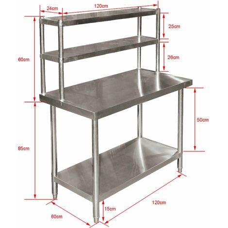 La hauteur peut être ajustée dans un délai de 6 cm., Utilisation flexible. La structure est stable, résistante à la corrosion et a une bonne capacité de charge. Table de travail en acier inoxydable avec roulettes, table de cuisine à 2 niveaux, table de préparation des aliments, table de démontage pour cuisine, restaurant, 60 x 60 x 85 cm TABLE TRAVAIL 1 ÉTAGÈRE 1500x700x850 INOX | - Equipamentos e... Grand espace de capacité : en plus du plan de travail surdimensionné, le niveau supérieur dispose également de 2 étagères de rangement qui offrent de la place pour de nombreux outils. Table auxiliaire pour instruments en acier inoxydable, réglable en Il y a également beaucoup d'espace de rangement. Polyvalent : la table de travail en acier inoxydable convient aux cuisines, jardins, restaurants commerciaux, hôtels, ateliers, hôpitaux et bien d'autres endroits. Mophorn Table De Travail En Acier Inoxydable 24 X 28 X 26 Po, Table De Travail En Acier Inoxydable 24 X 28 X 26 Po Table De Preparation Des Aliments Commerciale Robuste Avec Dosseret A 3 Cotes Hauteur Reglable Pour Restaurant Maison Et Hotel 85610363 ✔️【Réglable】: La hauteur de la cloison supérieure peut être ajustée en fonction de vos besoins réels pour s'adapter au rangement de cuisine de différentes hauteurs. Espace de rangement pratique, facile à nettoyer, résistant à la corrosion et durable. Matériau : acier inoxydable, facile à nettoyer.