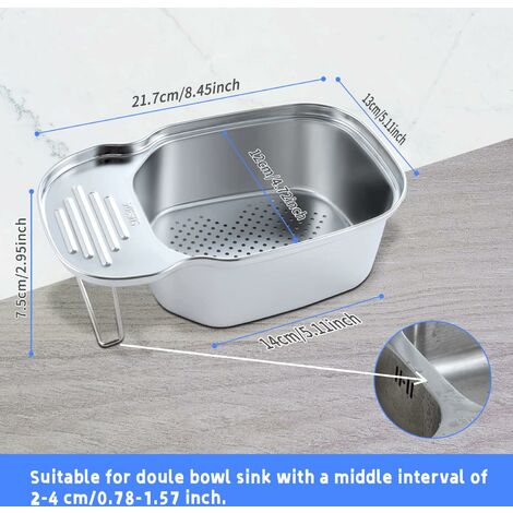 Nettoyage mains libres de la cuisine : la passoire suspendue pour robinet est conçue pour une élimination sans effort et hygiénique des restes alimentaires, vous assurant que vous n'aurez plus jamais à faire face aux mains sales lorsque vous utilisez votre panier de vidange d'évier de cuisine en plastique Conçu pour résister aux odeurs, il fonctionne de manière fiable dans les cuisines, salles de bains et buanderies. Passoire Lavabo Salle De Bain Douche Tahbarshi Lot De 2 Passoires D'évier De Cuisine, Grand Tamis D'évier En Acier Inoxydable Passoire évier Description du produit Passoire de cuisine Matériau de qualité fiable La construction ABS durable garantit des performances à long terme, résiste efficacement au contact de l'eau et prend en charge un nettoyage confortable dans les cuisines fortement utilisées Qualité des matériaux fiable : la construction ABS durable garantit des performances durables à long terme, gère efficacement le contact avec l'eau et prend en charge un nettoyage confortable dans les cuisines fortement utilisées Performance d'écoulement optimisée : conçue pour une élimination rapide des déchets, la structure à mailles fines et le mécanisme de pression captent efficacement les restes alimentaires et simplifient considérablement les tâches de rinçage et de nettoyage. Passoire pliable Cuisine Passoire extensible Fruits Légumes Nouilles... Tahbarshi Lot de 2 passoires d'évier de cuisine, grand tamis d'évier en acier inoxydable avec poignée relevable, diamètre 7,5 cm, filtre anti-encrassement, panier récupérateur de nourriture, bord Ce panier d'égouttement anti-obstruction pour lavabo se caractérise par une structure à mailles fines et est amovible pour un entretien sans effort. Avec son design suspendu, il prend en charge de nombreuses applications dans les maisons, les camping-cars, les zones commerciales et les douches. Large gamme d'applications Capture efficacement les restes alimentaires, sépare les feuilles de thé, filtre les particules de légumes et évacue l'humidité des fruits – Idéal pour toutes les tâches de cuisine