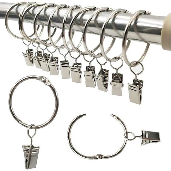 Quantité suffisante : livré avec 50 anneaux de rideau en métal, assez pour un usage quotidien et un remplacement. La finition noire mate s'adapte à tous les intérieurs. Large application : les anneaux de rideaux noirs conviennent à la plupart des types de rideaux, tels que les rideaux de douche, les rideaux, les rideaux français, etc. Accessoire Rideau Douche FWEEK Lot De 50 Anneaux De Rideaux En Métal Argenté - Diamètre Intérieur : 38 Mm - Pour Fenêtre, Porte, Rideau De Douche Rideau Douche Fenêtre Porte En plus d'ajouter une touche décorative à vos rideaux, ces anneaux en métal noir offrent une grande résistance et durabilité. Ils sont parfaits pour créer un look moderne et élégant dans votre intérieur Double usage - Clips pratiques pour maintenir les rideaux, ou vous pouvez retirer le clip et utiliser les anneaux seuls. Robuste et durable - Fabriqué en métal de qualité supérieure, durable et anti-rouille. Facile à installer, l'anneau peut être ouvert et fermé directement. Le rideau peut être sans enlever la barre, glisser en douceur, pousser l'anneau librement. Application parfaite... Noir 20 Pièces 38 mm Anneaux à Pince à Rideau en métal Ouvrants