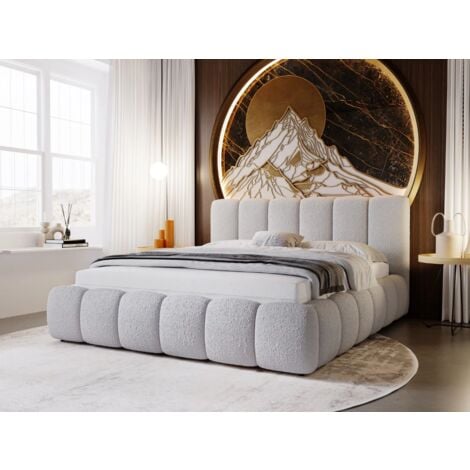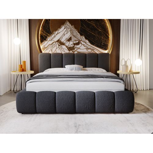 Tête de lit tapissée, finition arrière en tissu noir Wigofil Le lit rembourré Cloud 160x200 est une parfaite combinaison de design moderne , de construction robuste et d'un confort exceptionnel. Sa forme unique, obtenue grâce à l'utilisation de mousse épaisse et de matériaux de haute qualité, en fait un choix idéal pour toute chambre à coucher Le lit double Cloud offre un parfait équilibre entre design contemporain et confort. 🪵 Structure en bois robuste avec sommier inclus – La combinaison d’un cadre en bois massif et d’un sommier résistant garantit une excellente stabilité, même en usage intensif. 🧺 Coffre de rangement intégré – Gagnez de l’espace dans votre chambre grâce au coffre dissimulé sous le sommier. Tolérance dimensionnelle : +/- 5 cm 🛏️ Confort luxueux au quotidien – Grâce à son rembourrage en mousse épaisse et sa structure solide, le lit Cloud offre un soutien optimal pour des nuits reposantes et un confort durable. Le lit double rembourré Cloud est un meuble élégant et moderne qui allie confort et fonctionnalité. Sa forme douce avec une mousse épaisse, sa construction stable et son coffre de rangement pratique en font un excellent choix pour toute chambre à coucher Sa forme rembourrée en mousse épaisse et sa structure solide en bois en font un choix idéal pour une chambre moderne. Lit 160 x 200 cm en velours, Lit rembourré avec Coffre de rangement Lit Design Moderne Coffre Intégré GRAINGOLD Cloud Lit 160x200, Boxspring Avec Coffre De Rangement Lit Double Avec Coffre Ouverture assistée par vérins à ressorts Doté d’un coffre de rangement intégré et d’un sommier en bois, il est pratique et élégant. L’accès au coffre est facilité par des vérins à ressorts pour une ouverture sans effort., Matelas non inclus. Revêtu du tissu bouclé Anthology, le lit se distingue par une texture unique et agréable, tout en étant résistante à l’usure., Dimensions : Largeur : 185 cm, Profondeur : 227 cm, Hauteur : 105 cm Caractéristiques : Cadre stable avec sommier en bois inclus