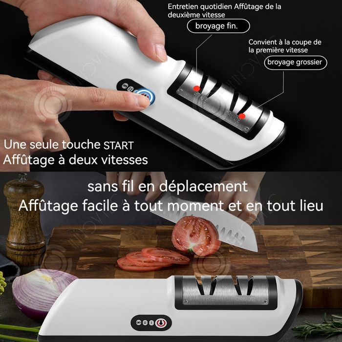 Pour lames en acier et céramique, et pour couteaux crantés Aiguiseur électrique diamant rechargeable de la marque Rosenstein & Söhne Pour lames en acier et céramique, et pour couteaux crantés Système d'aiguisage à 3 niveaux : aiguisage grossier, aiguisage fin, polissage Utilisation simple : angle d'aiguisage maintenu automatiquement Revêtement caoutchouc antidérapant sur le dessous pour une utilisation en toute sécurité Pour droitiers et gauchers Meules solides avec revêtement en diamant : durée de vie estimée jusqu'à 3 ans Tiroir de collecte des résidus de matière Protection contre la surchauffe Mâchoire de protection en plastique PPE très résistant : protège le boîtier des entailles Composition du boîtier : plastique ABS solide Coloris : noir et blanc Puissance : 12 W Alimentation : batterie lithium-ion de 2000 mAh pour autonomie jusqu'à 210 min, chargement par USB (chargeur secteur non fourni) Dimensions : 280 x 85 x 66 mm, poids : 660 g Aiguiseur de couteaux diamant, câble Micro-USB, mode d'emploi en français Batterie intégrée indépendante du réseau secteur , Chargement par USB Aiguiseur Electrique Aiguiseur électrique Pour Couteaux Avec 2 Niveaux D'aiguisage 60 W Ref Nx7855 3 Aiguiseur Couteaux Electriques Rosenstein & Söhne Aiguiseur Électrique Sans Fil Rechargeable Avec Meules Diamant - Rosenstein & S au meilleur prix - Comparez et achetez Rosenstein & Söhne Aiguiseur Électrique Sans Fil Rechargeable Avec Meules Diamant - Rosenstein & S avec par Kelkoo - Publicité Rosenstein & Söhne : Aiguiseur électrique diamant pour couteaux en acier et céramique - 60 W : infos et prix. Achetez sur et faites vous livrer chez vous ou bénéficiez du retrait en magasin Aiguiseurs de couteaux | Accessoires de cuisine